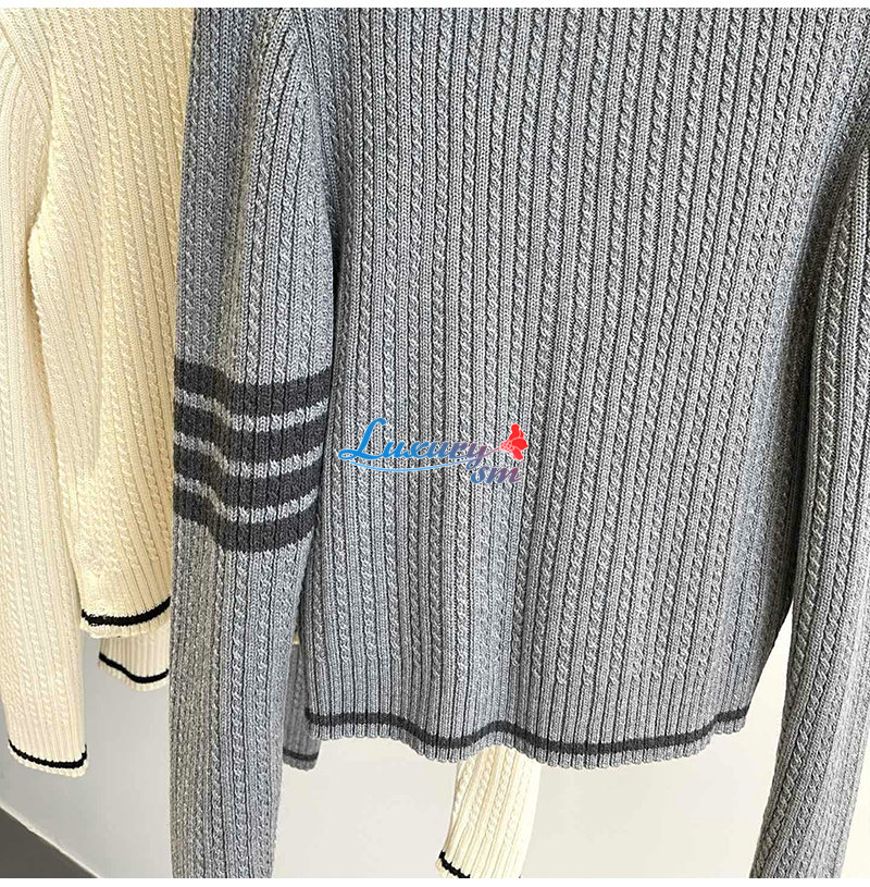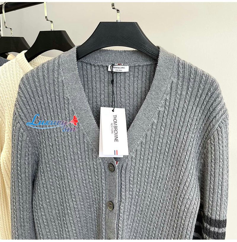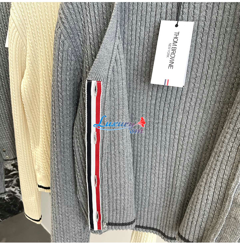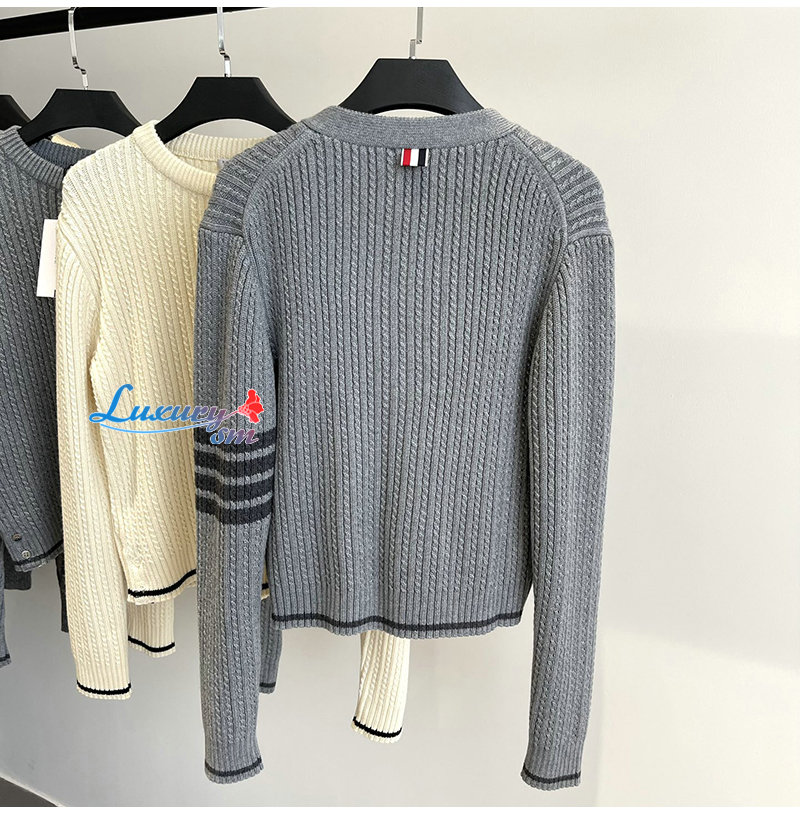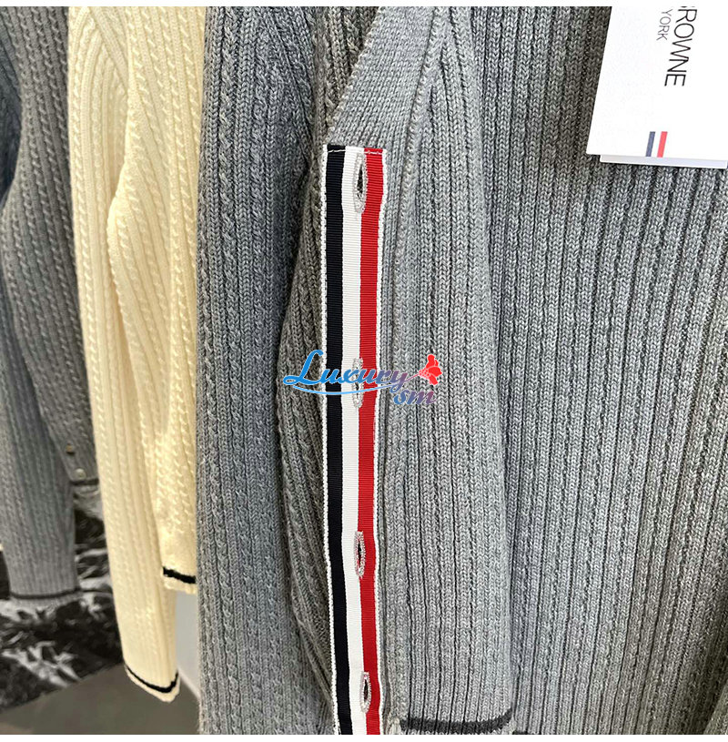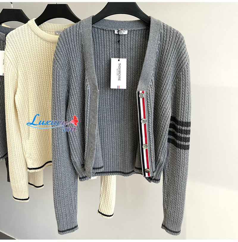THOM BROWNE-11112 톰 브라운 그레이 스트라이프 장식 가디건 여성용