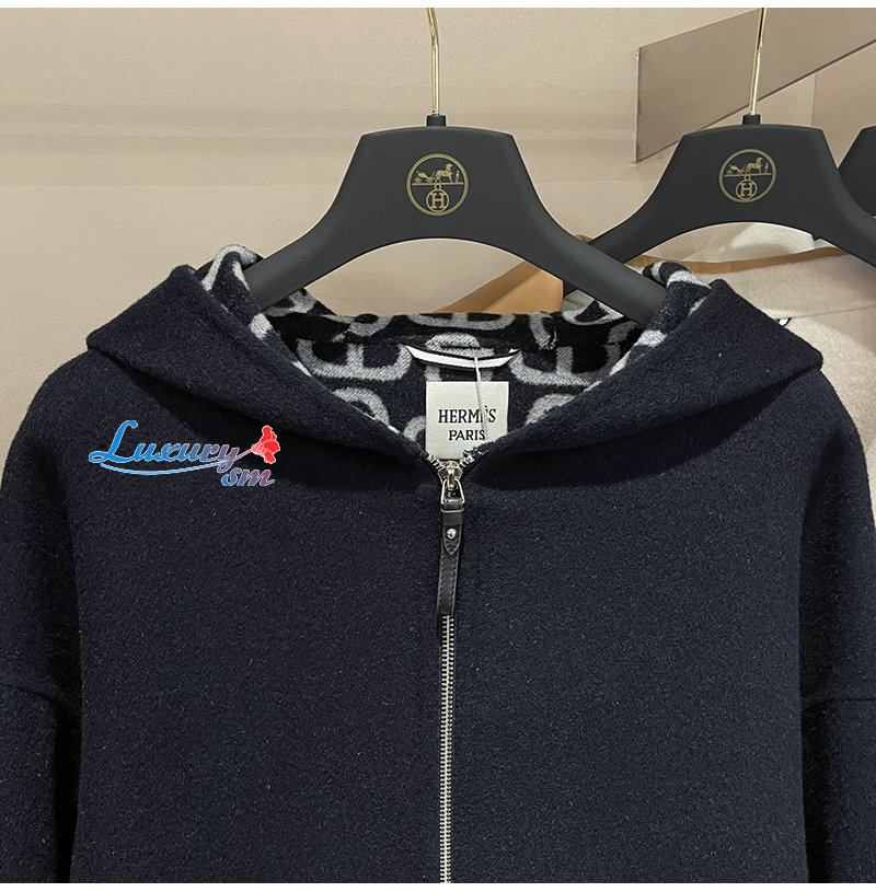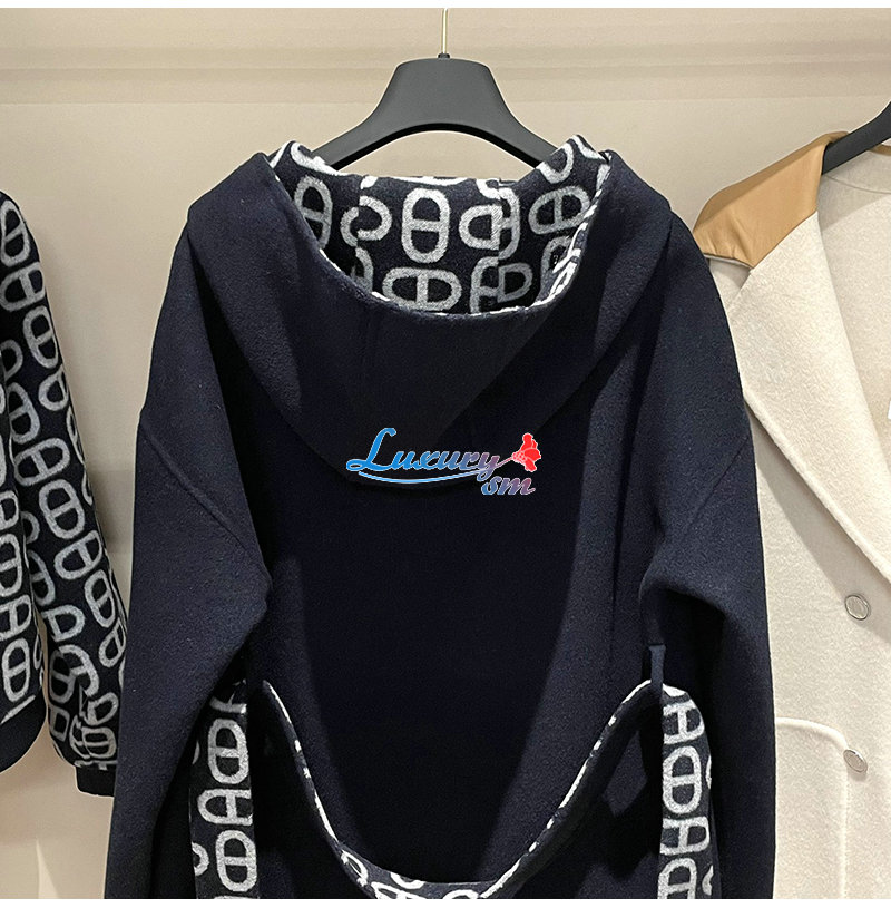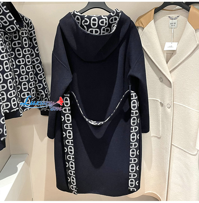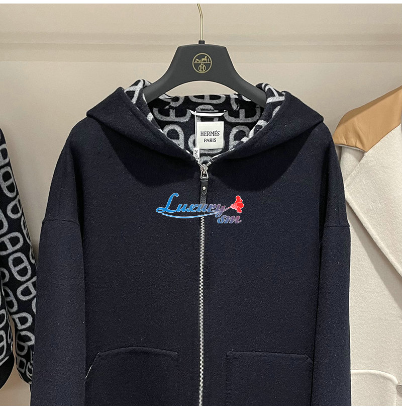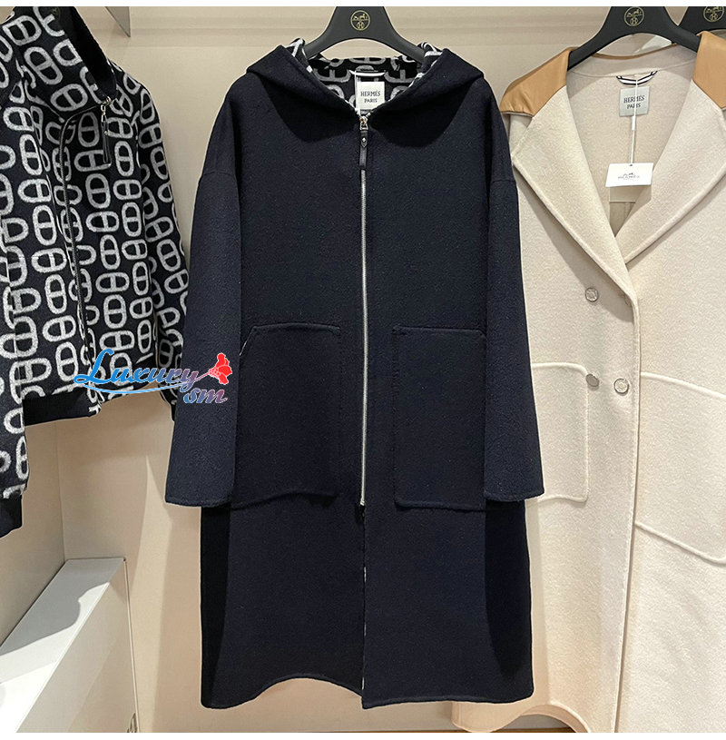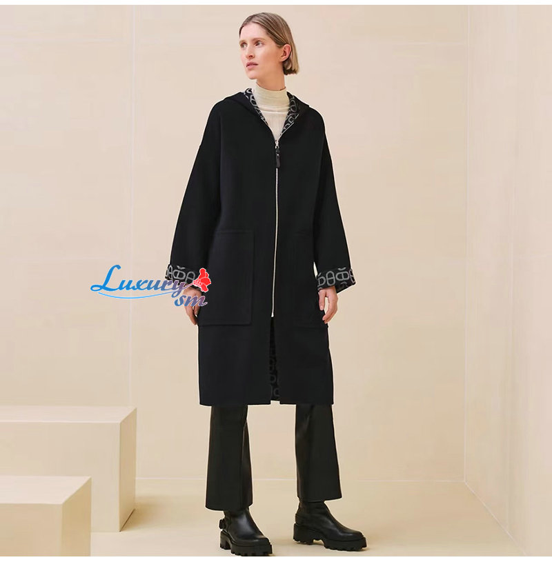 HERMES-111110 에르메스 블랙 울 후드 코트 여성용