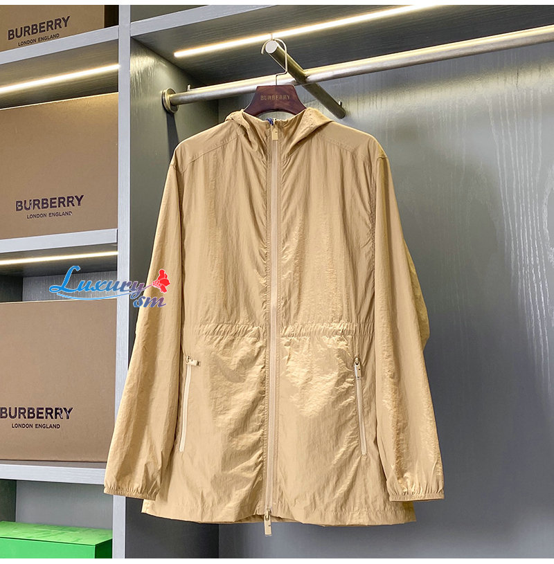 BURBERRY-02172 버버리 베이지 아플리케 장식 바람막이 후드 재킷 여성용