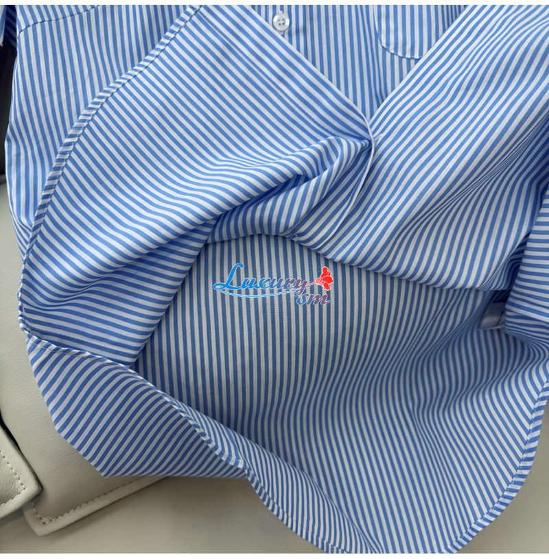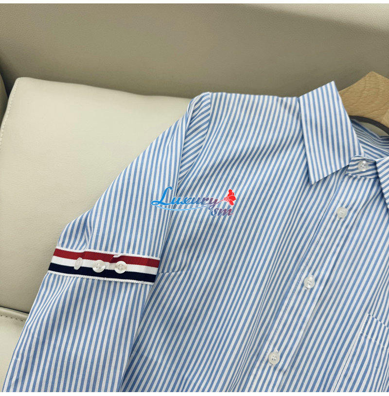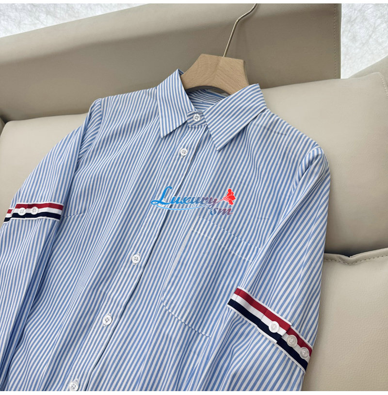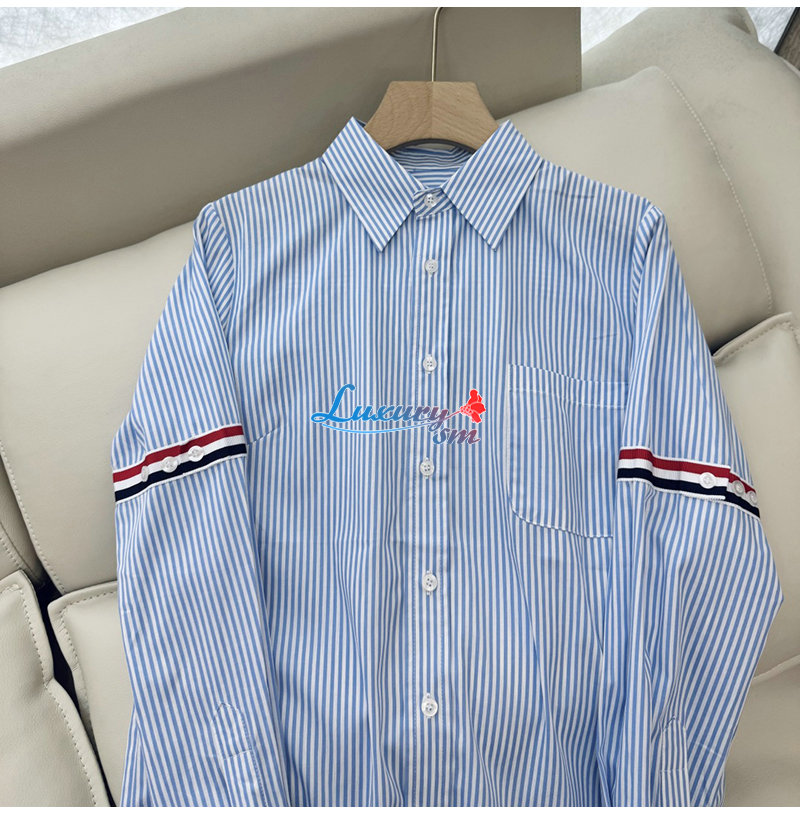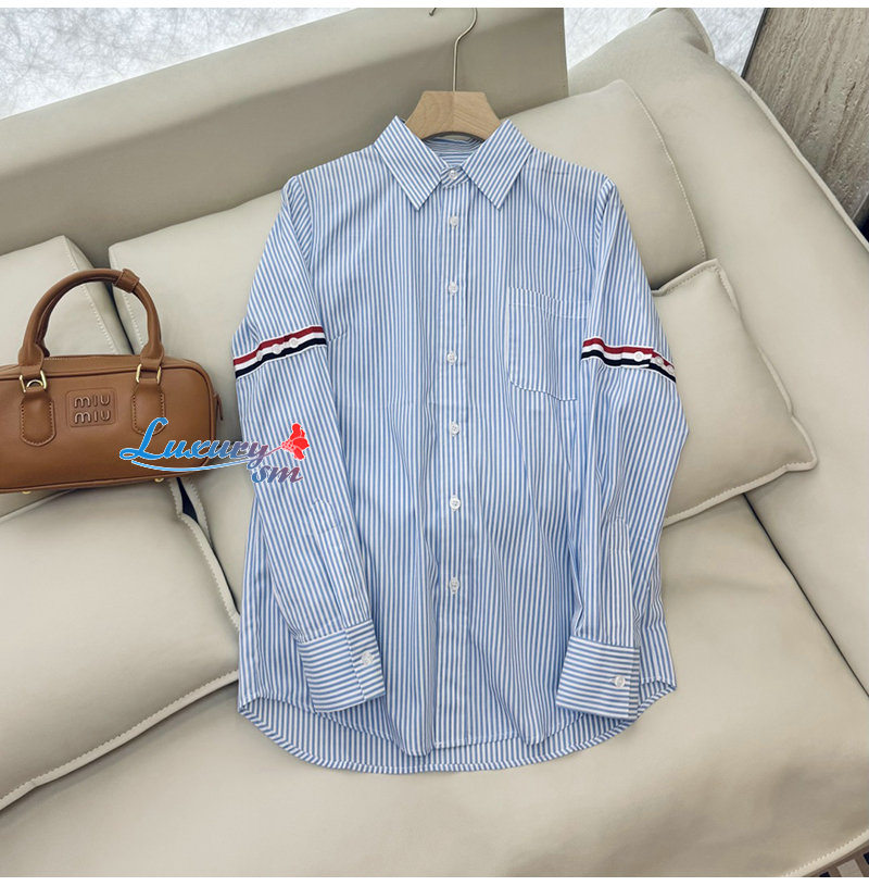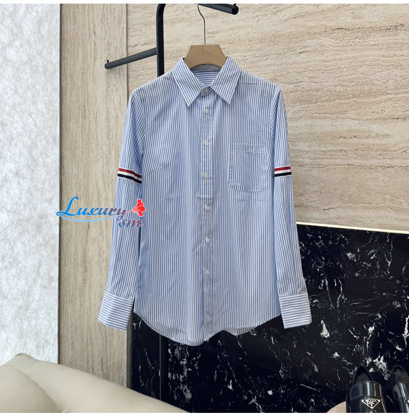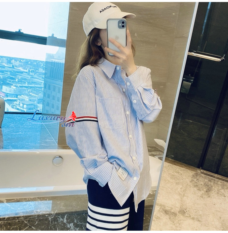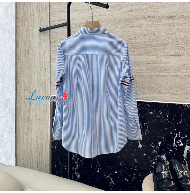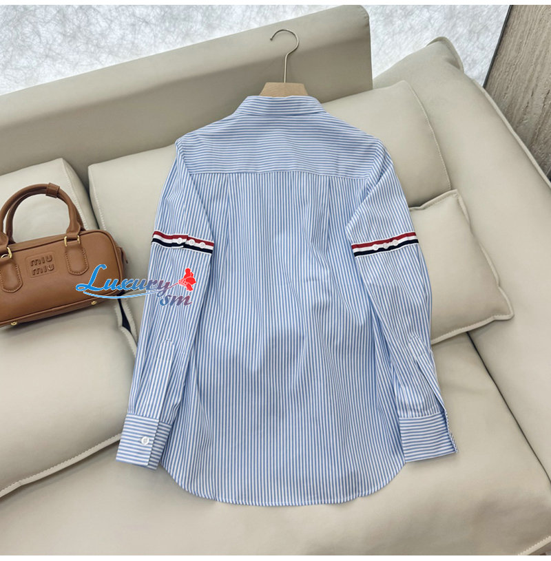 THOM BROWNE-03104 톰 브라운 라이트 블루 스트라이프 장식 셔츠 여성용