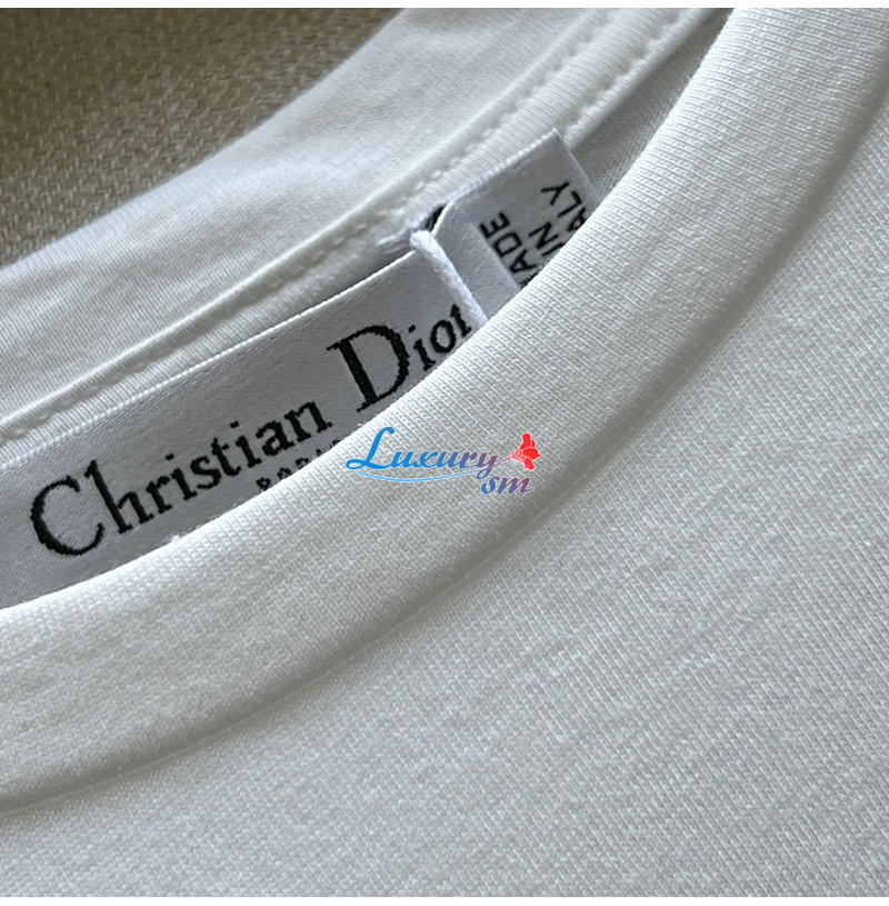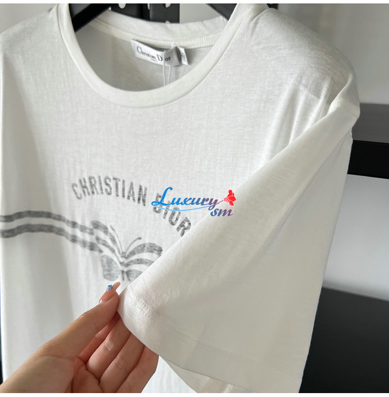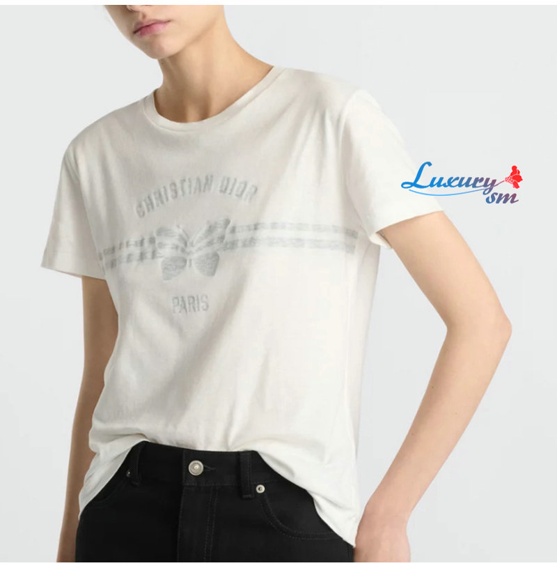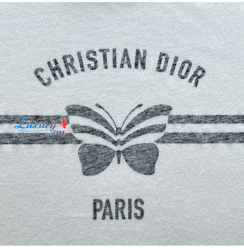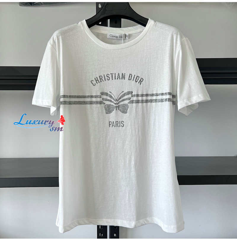 DIOR-523T39 디올 화이트 Christian Dior Papillon 모티브 티셔츠 여성용