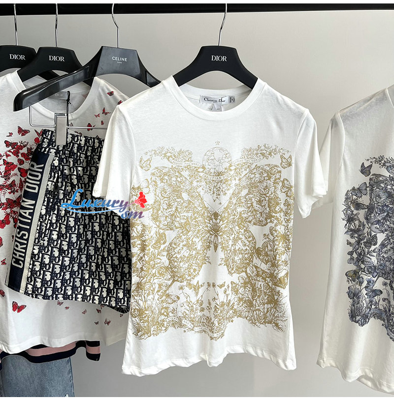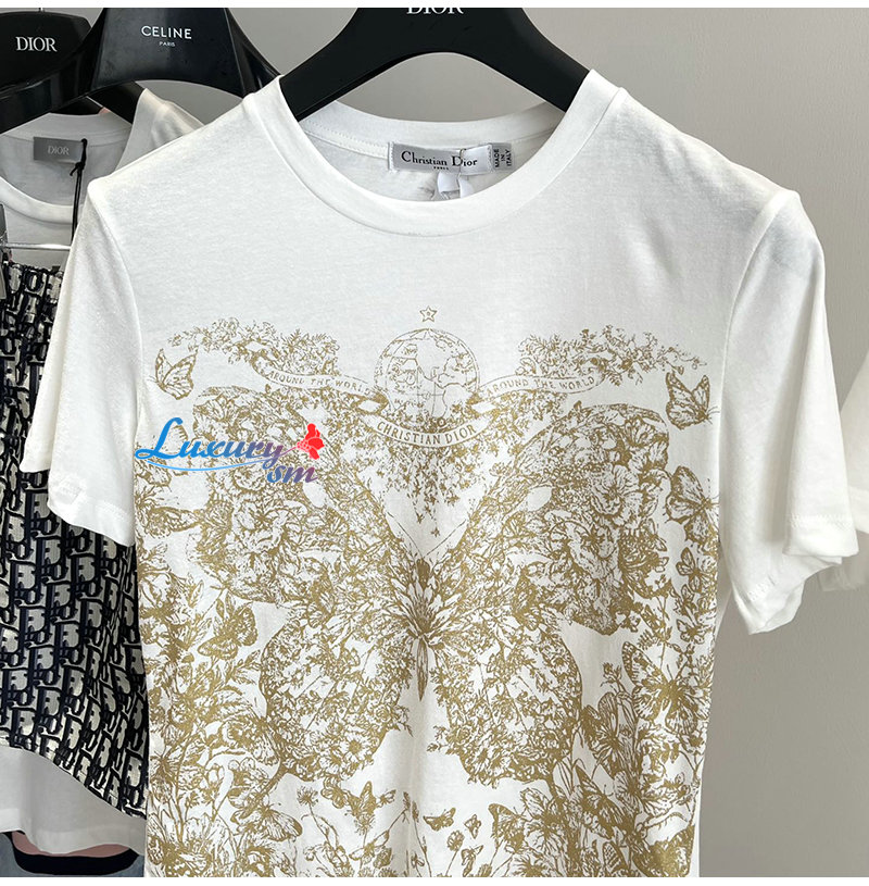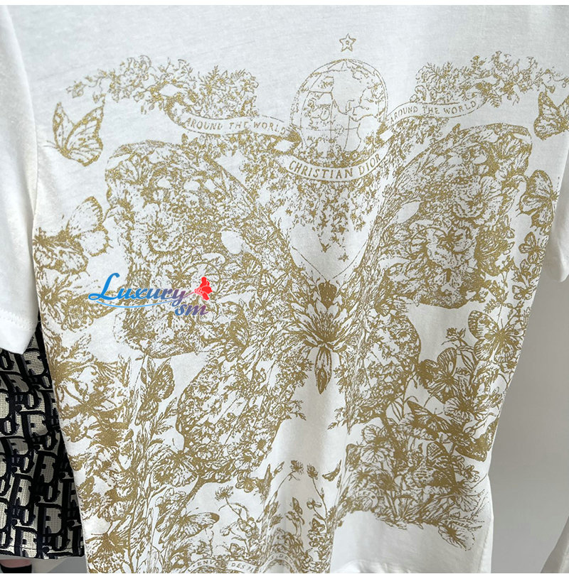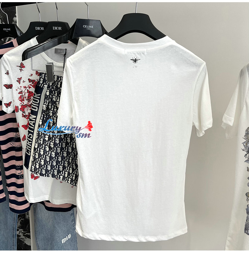 DIOR-03244 디올 화이트 아플리케 장식 티셔츠 여성용