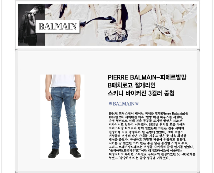 ●PIERRE BALMAIN 국내외 연예인들의 많은 사랑을 받고있는 프랑스의 대표적인 아이코닉 브랜드 BALMAIN의 세컨브랜드 디퓨전 라인입니다. 발망보다 부드럽고 편안한 맵시를 선사하면서 시크한 브랜드 정체성을 지니고있는 고가라인의 토탈브랜드입니다.