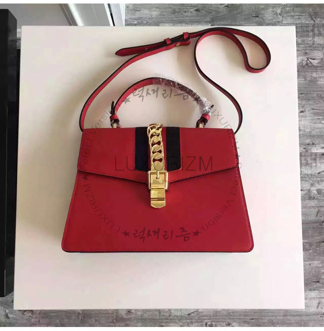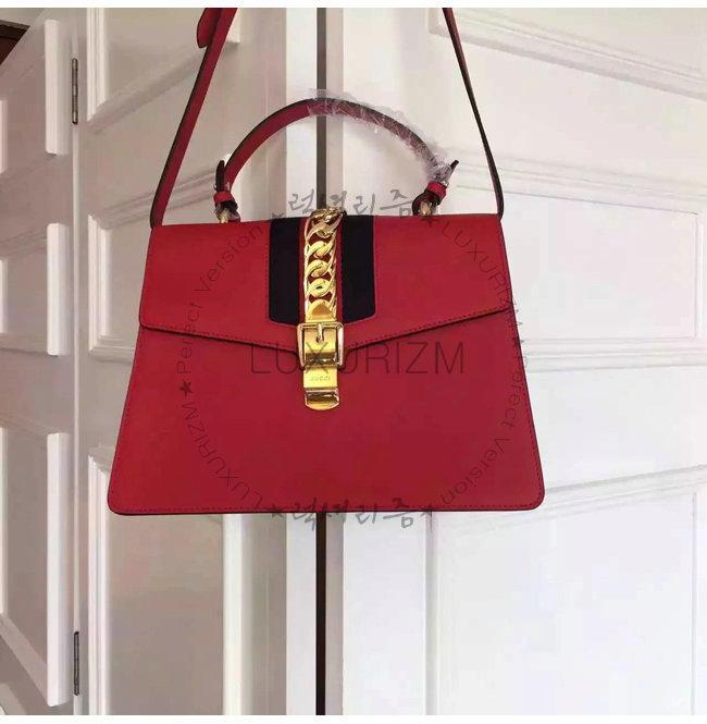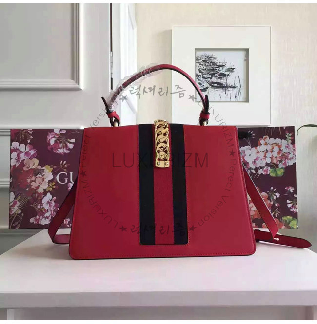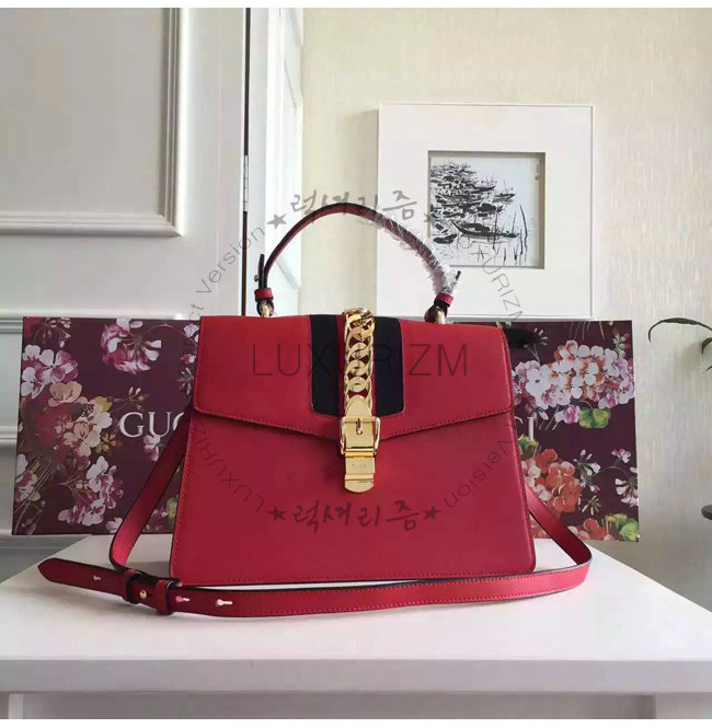 [스페셜오더]GUCCI-431665 6473 구찌 [sylvie] 실비 레드 미디엄 탑 핸들 백