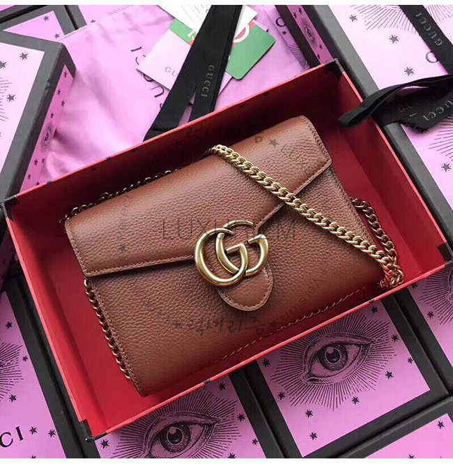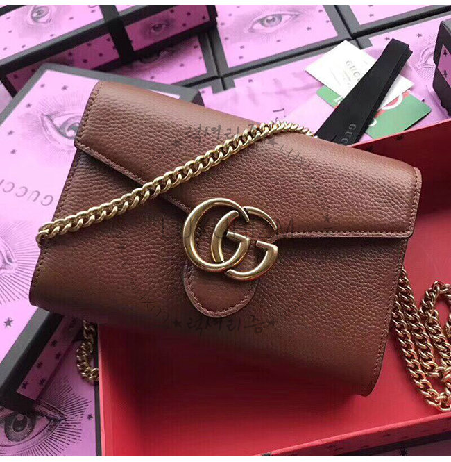 [스페셜오더]GUCCI-401232 2548 GG Marmont 미니 가죽 체인 지갑 넛브라운