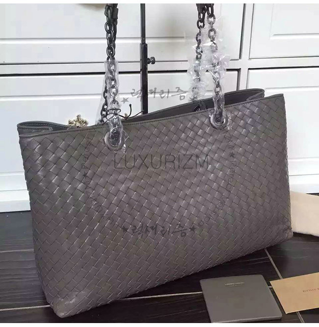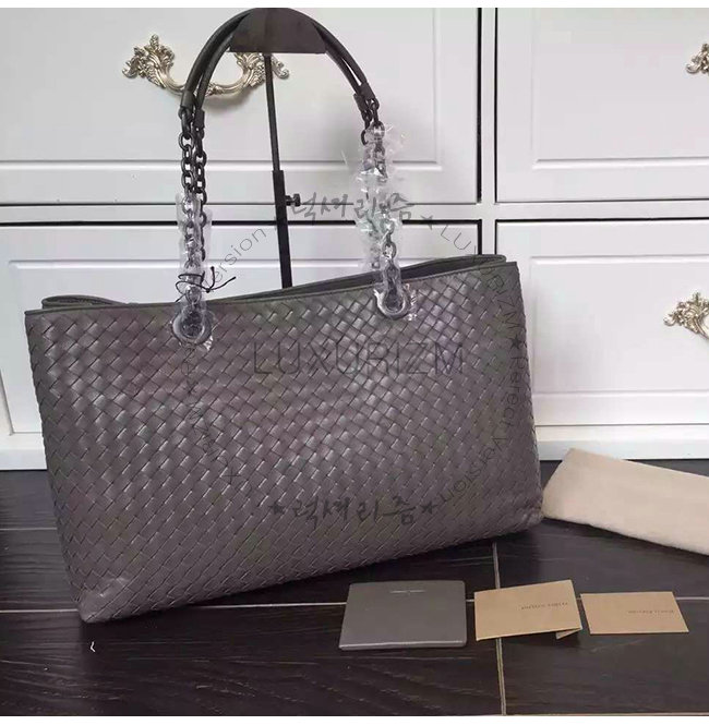BOTTEGA VENETA-7640 보테가 베네타 뉴 라이트 그레이 인트레치아토 나파 라지 토트 백