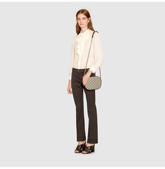 환경 영향이 적은 소재 베이지/에보니 GG 수프림 캔버스 및 브라운 가죽 디테일