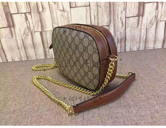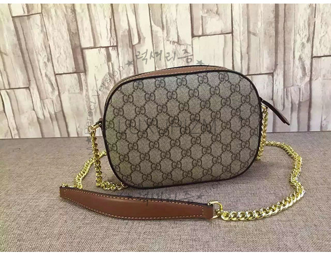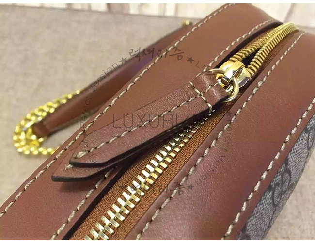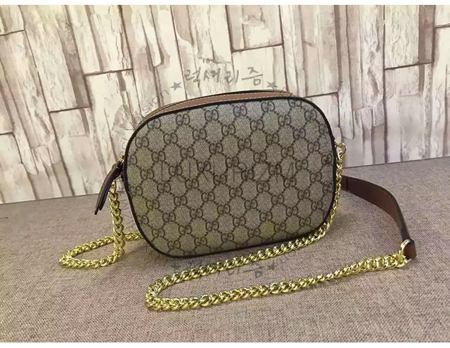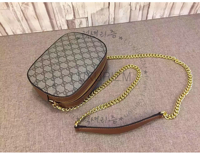 GUCCI-409535 8526 구찌 체인 숄더 스트랩 GG 수프림 캔버스 콤팩트 백 브라운