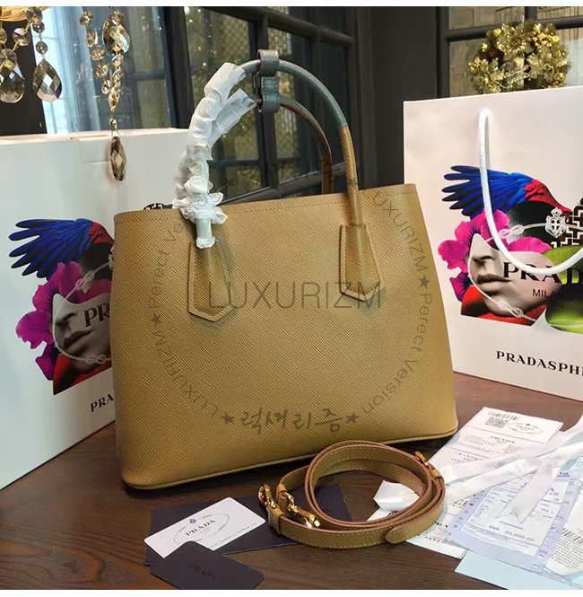 [스페셜오더]PRADA-1BG775 프라다 사피아노 더블 가죽 핸들 토트백 레드브라운