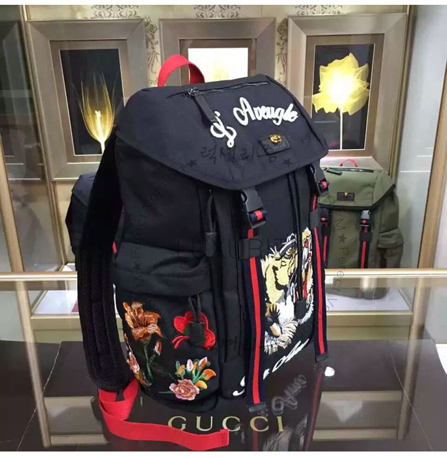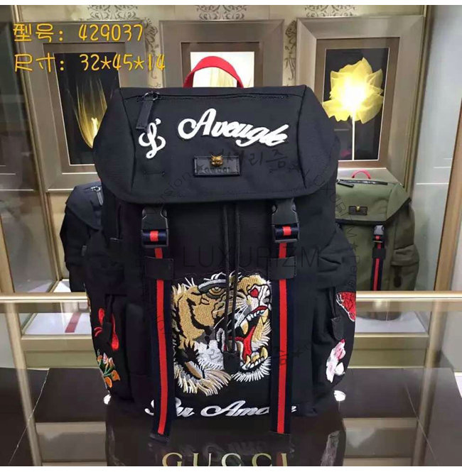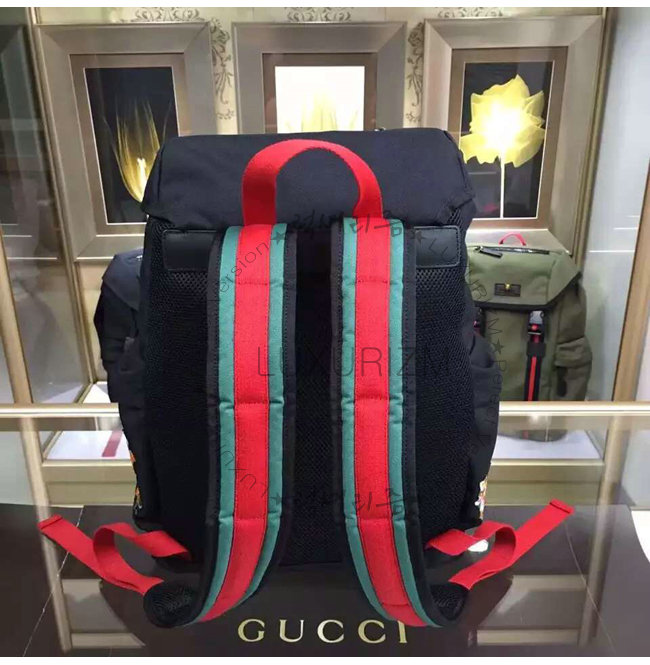 GUCCI-429037 8676 구찌 Techpack 아플리케 자수 장식 백팩 블랙