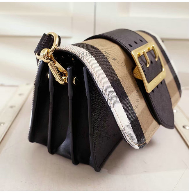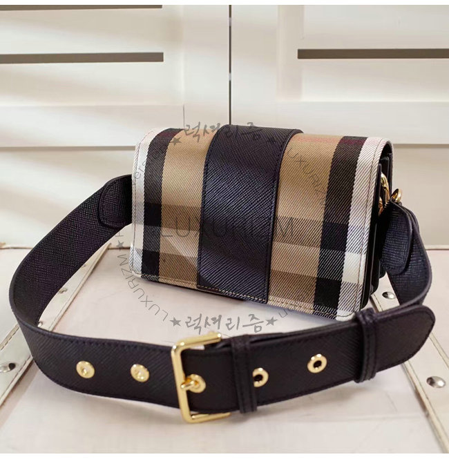 BURBERRY-40224601 버버리 하우스 체크 가죽 버클 백 블랙