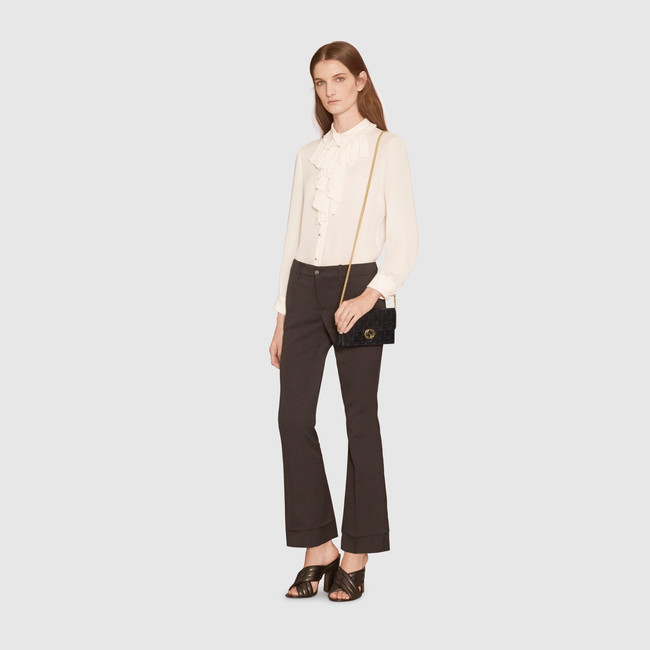 GG 로고가 양각으로 새겨진 가죽 소재의 체인 지갑