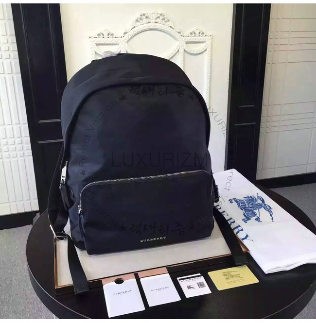 BURBERRY-40161 버버리 가죽 트리밍 나일론 백팩 블랙