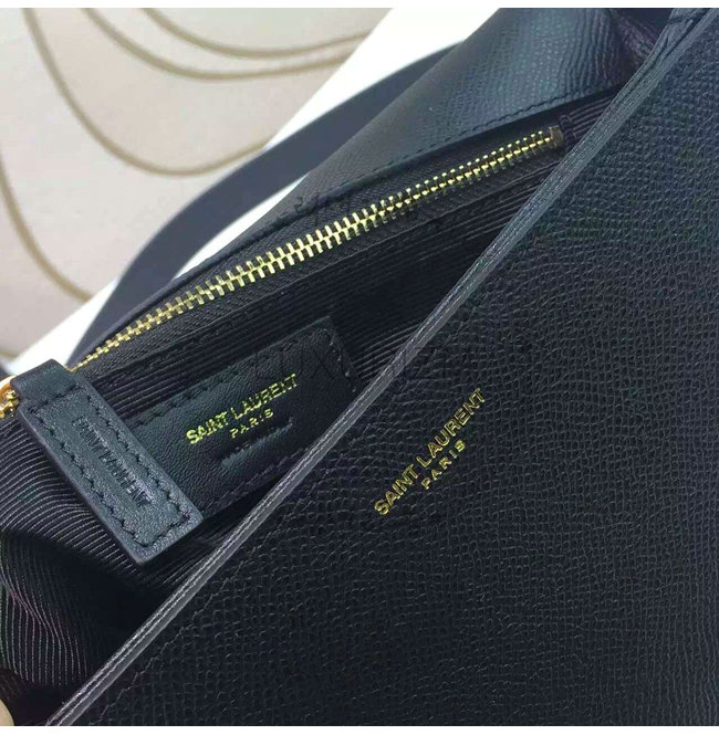골드-톤 인터로킹 YSL 시그니처 버클 클로저와 길이 조절 가능한 숄더 스트랩의 숄더 백.