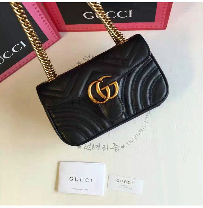 [스페셜오더]GUCCI-446744 1000 구찌 GG Marmont 미니 소프트 스트럭처드 체인 숄더백 블랙