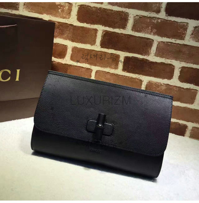 GUCCI-387220 1000 구찌 Bamboo Daily 가죽 클러치 블랙