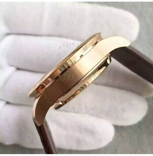 -분과 초 측정 해주는 스톱워치 기능/18k 레드 골드 이온 전착 도금(IPG)/브라운 레더 스트랩.