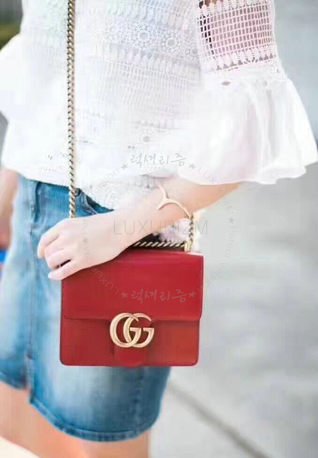 [스페셜오더]GUCCI-431384 6433 GG 마몽 스몰 사이즈 스트럭처드 체인 숄더백 레드