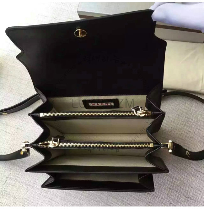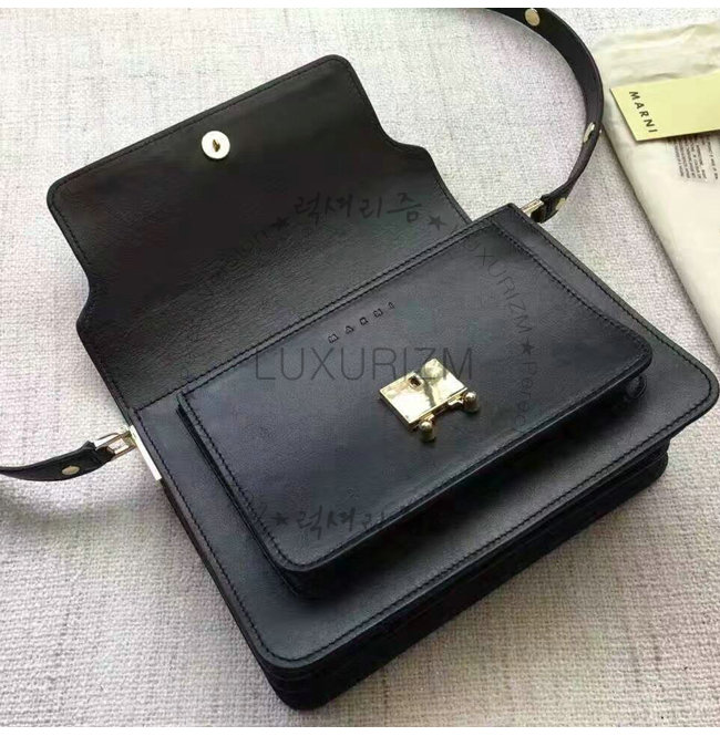 [스페셜오더]MARNI-8801 마르니 사피아노 카프스킨 미디엄 숄더스트랩 트렁크 백 ONYX