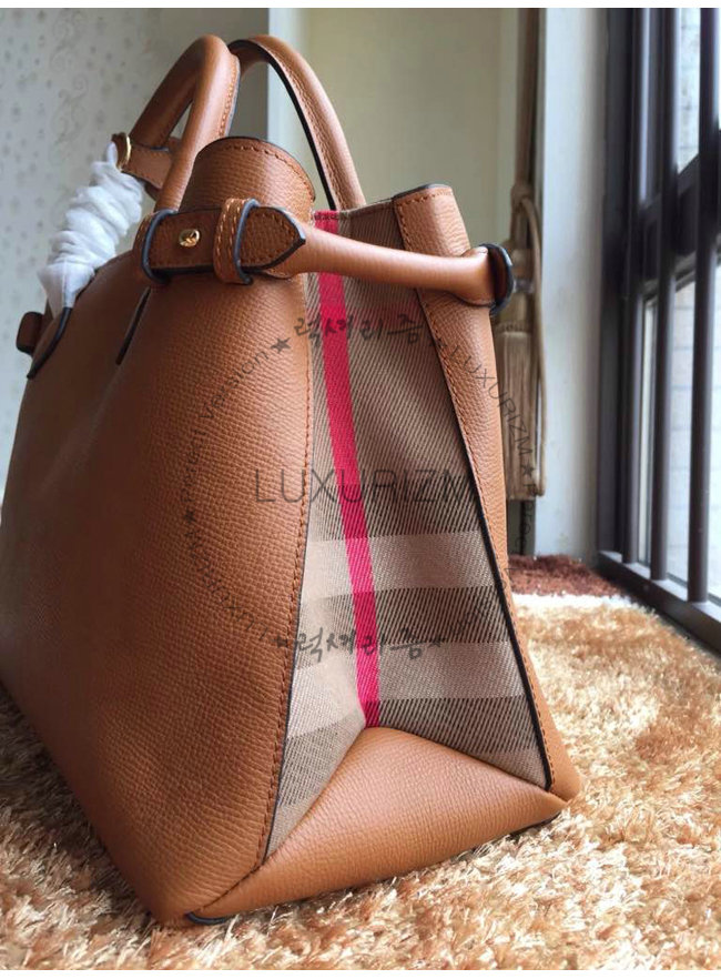 [스페셜오더]BURBERRY-404598 버버리 미디엄 가죽 하우스 체크 배너 탠