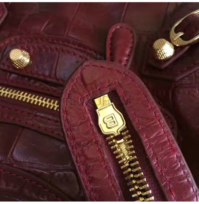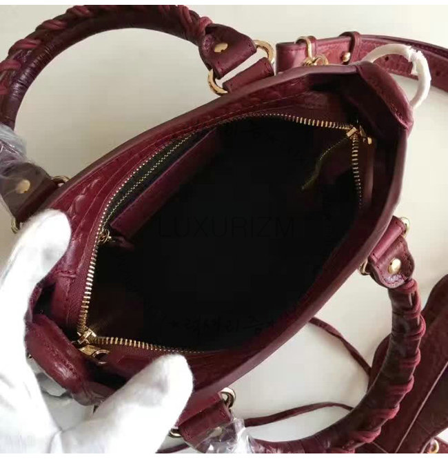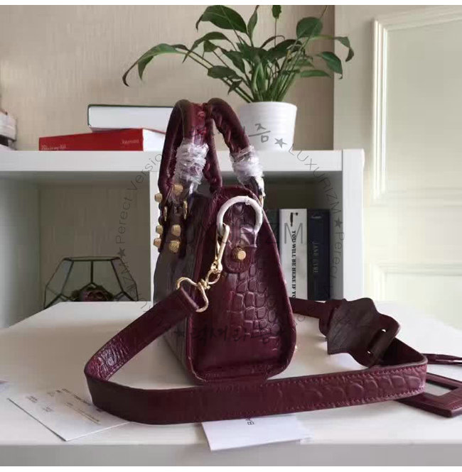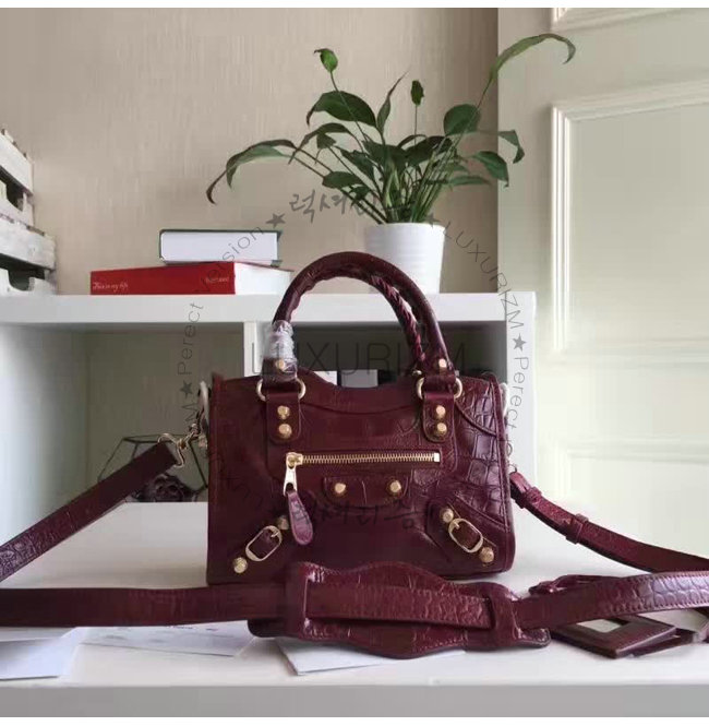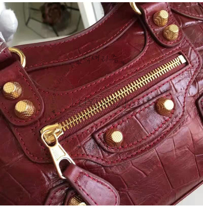 BALENCIAGA-11521 발렌시아가 크로커다일 효과 자이언츠 12 골드 미니 시티 와인