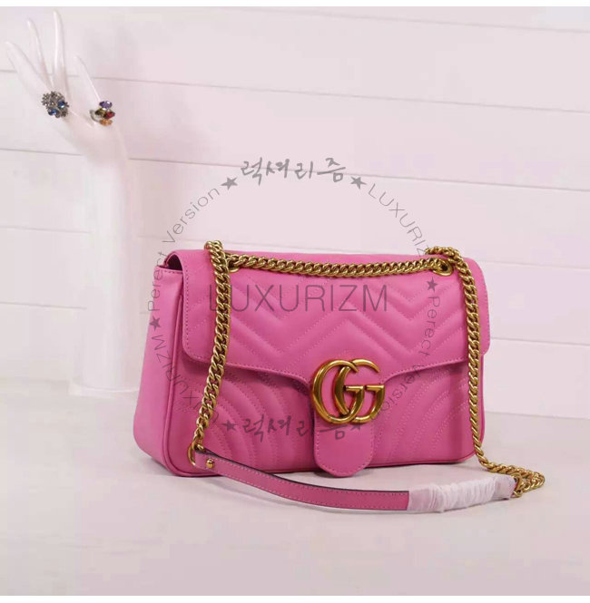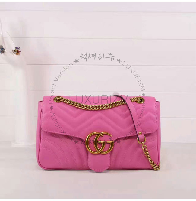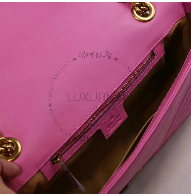 #홍콩명품 1대1 완벽재현 스페셜오더GUCCI-443499 9022 구찌 GG 마몽 마틀라세 미디엄 핑크 스트럭처드 체인 숄더백by럭셔리즘.