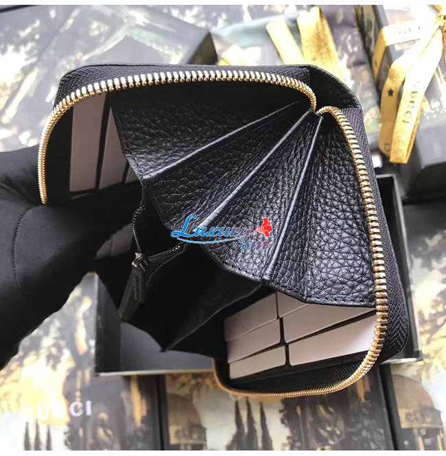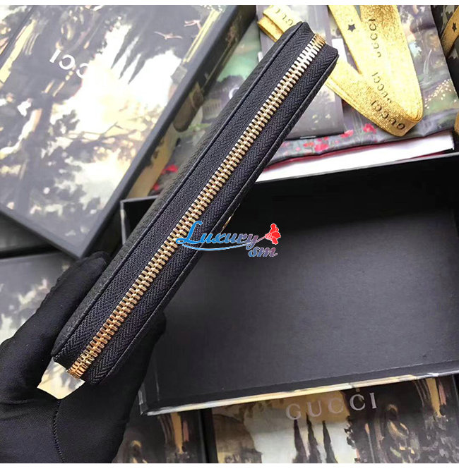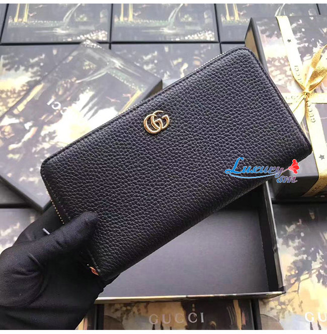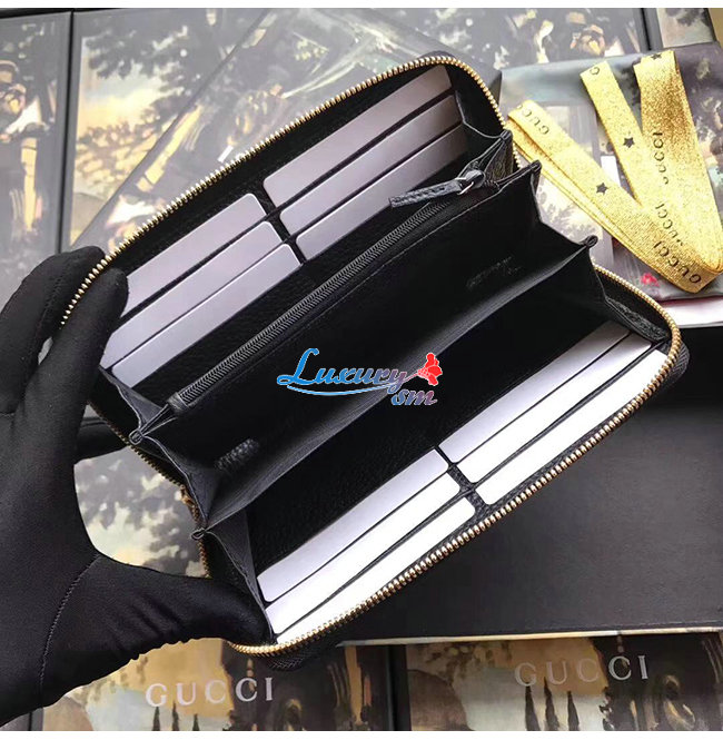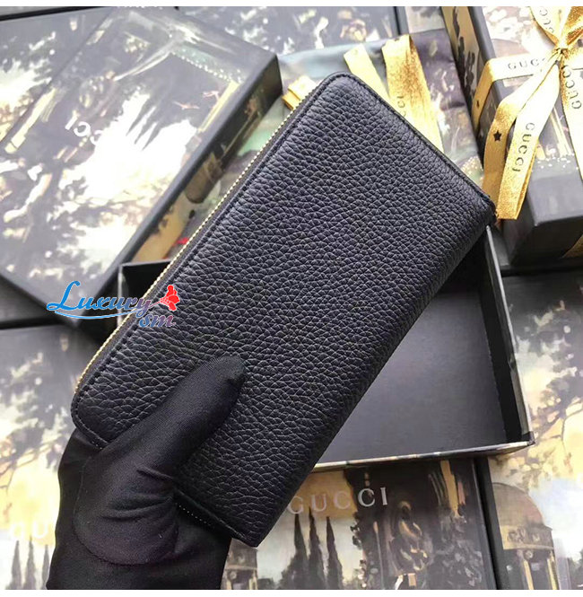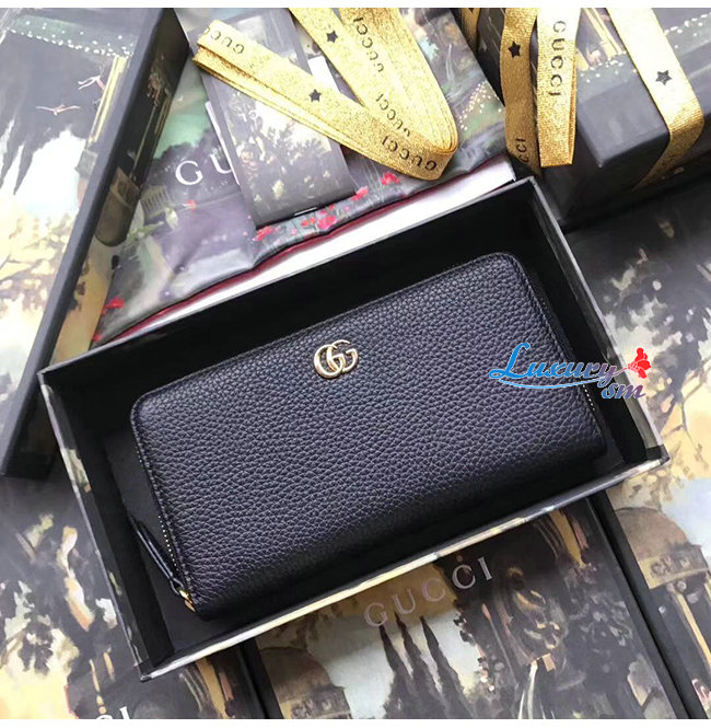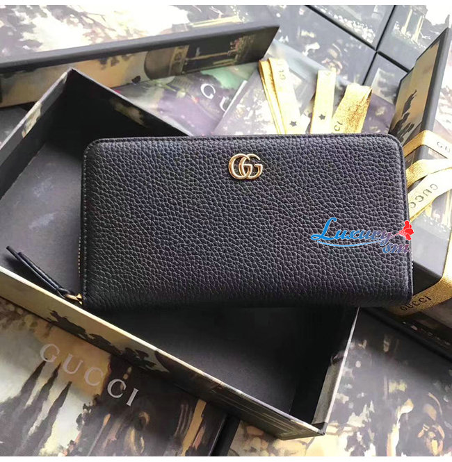 GUCCI-456117 1000 구찌 더블 G 메탈 디테일 블랙 지퍼 장 지갑