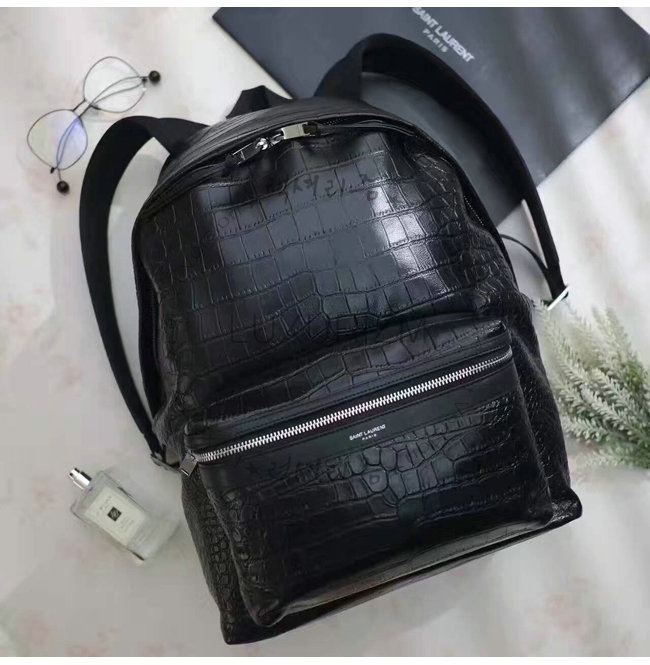 [스페셜오더]SAINT LAURENT-326865 생 로랑 크로커다일 무늬 블랙 가죽 클래식 헌팅 백팩