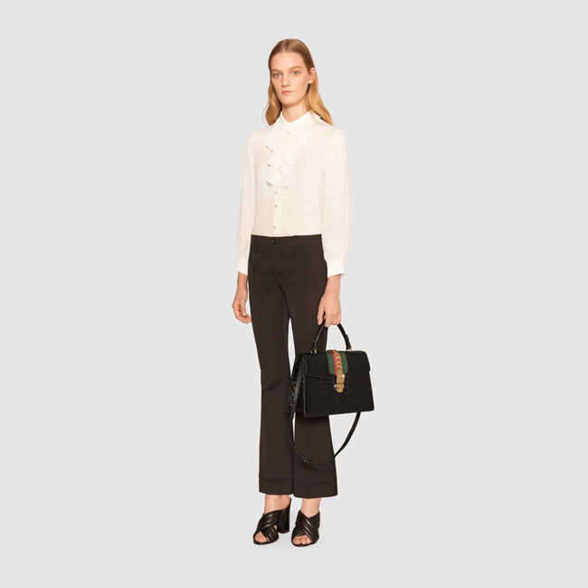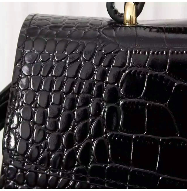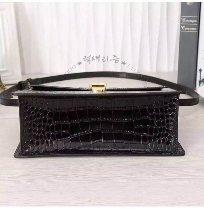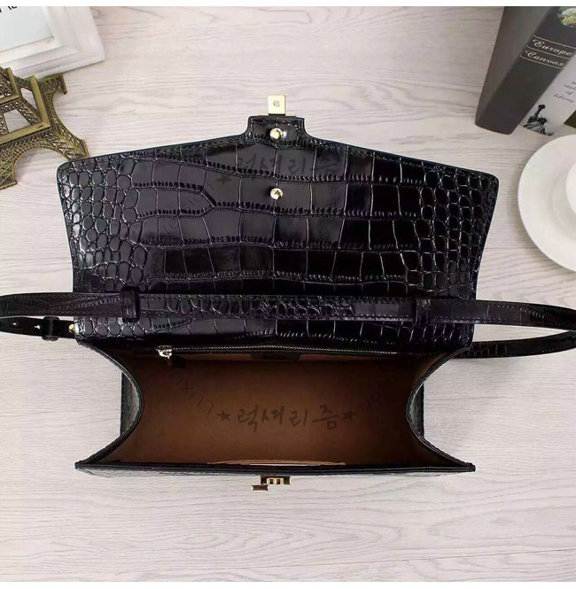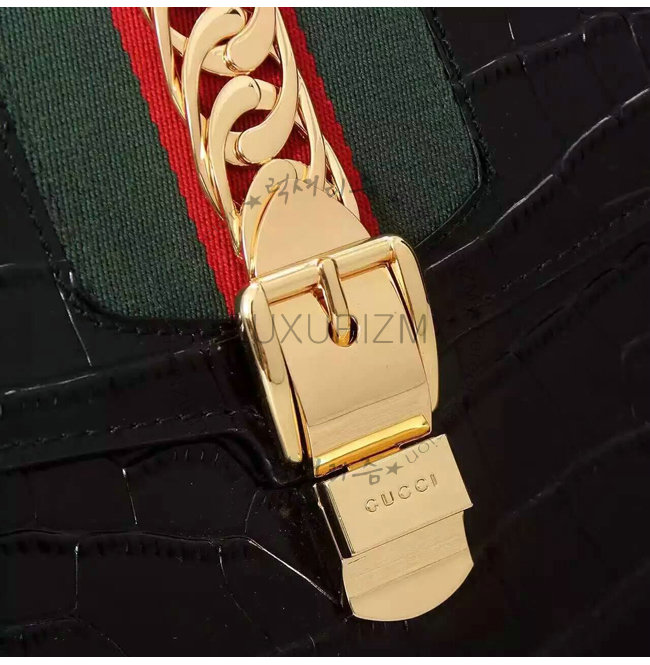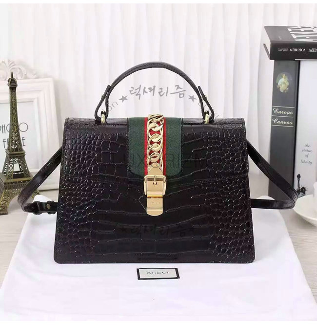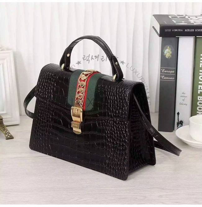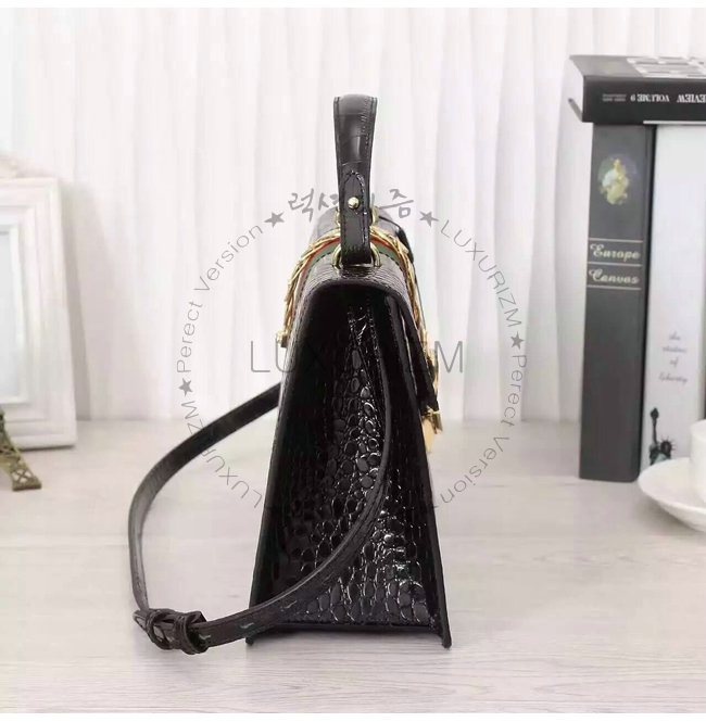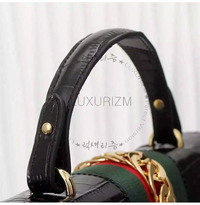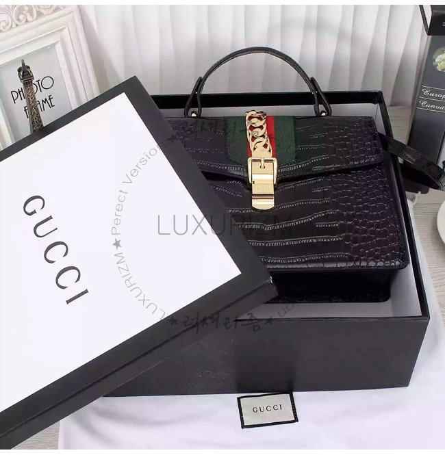 GUCCI-431665 1060 구찌 sylvie 실비 블랙 미디엄 크로커다일 무늬 가죽 탑 핸들 백
