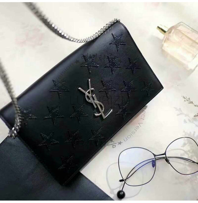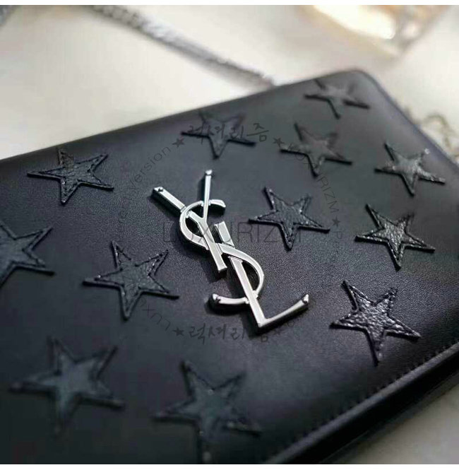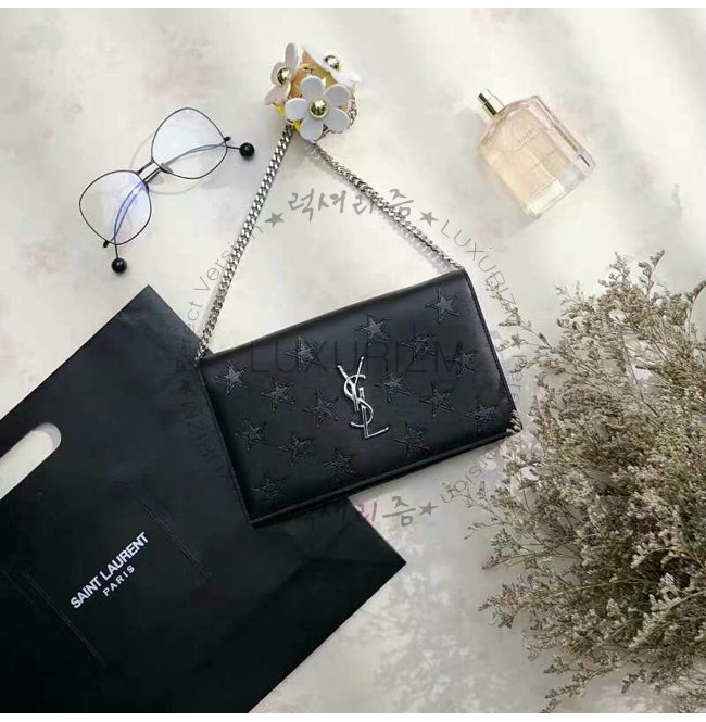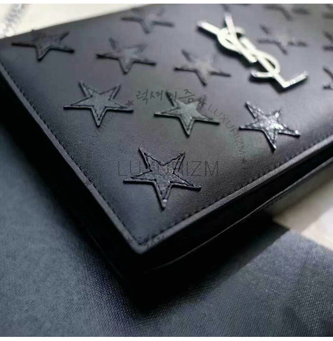 [스페셜오더]SAINT LAURENT-442015 생 로랑 블랙 스타 애플리케이션 모노그램 숄더 체인 월릿