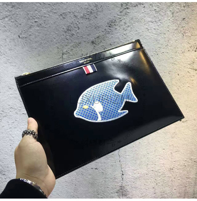 [스페셜오더]THOM BROWNE-P4071 톰 브라운 물고기 패치 유광 미듐 클러치