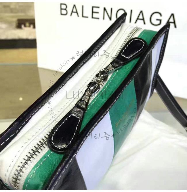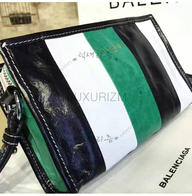#발렌시아가 클러치백 홍콩명품 레플리카 쇼핑몰 BALENCIAGA-B1188 발렌시아가 바자 스몰 스트랩 클러치 백 블랙/화이트/그린.