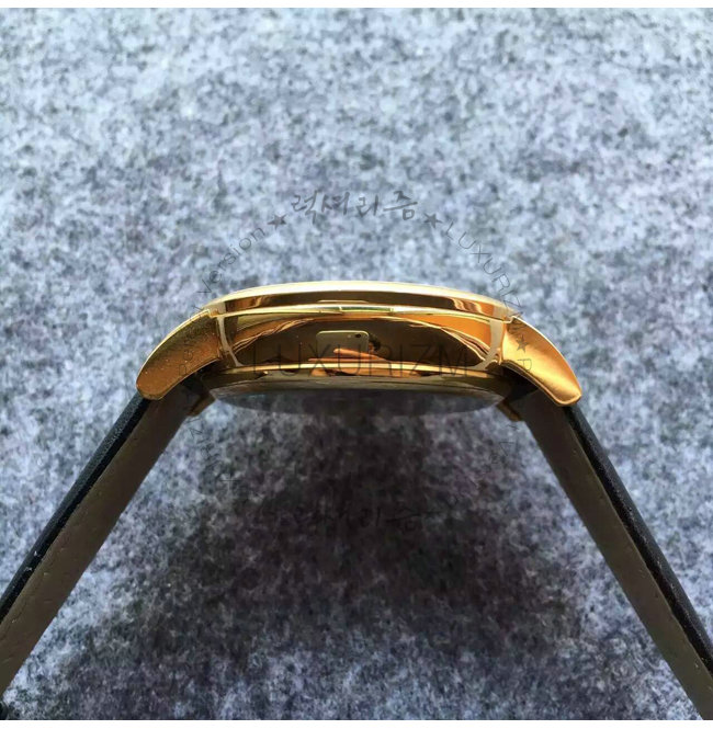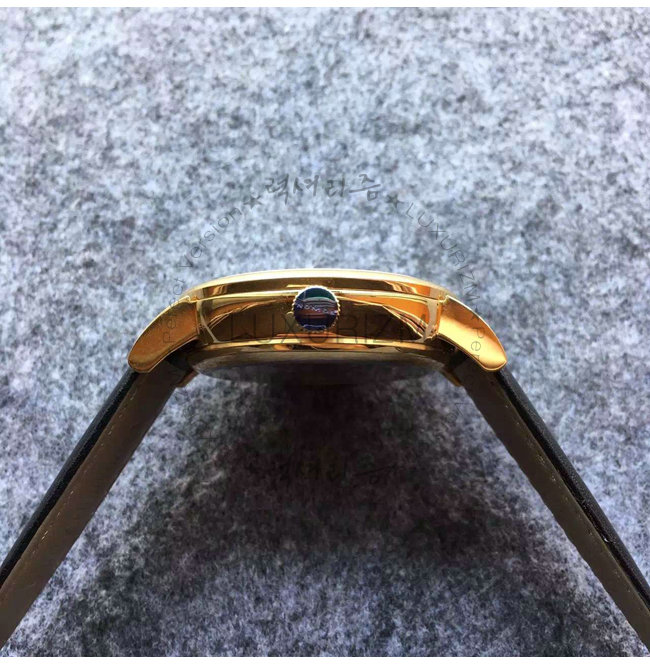 -18k 로즈 골드 특수 이온 전착 도금(IPG)/블랙 레더 벨트식 스트랩/생활방수.
