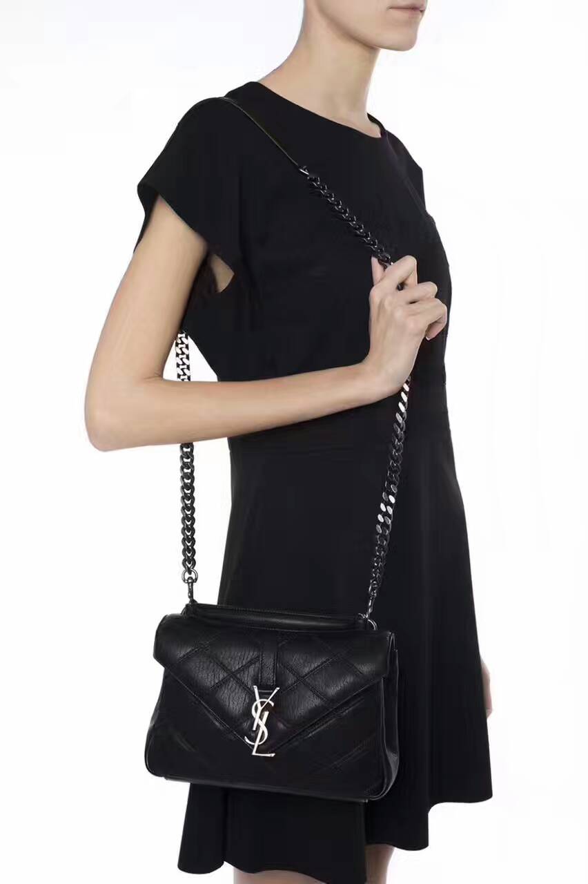 탈부착 가능한 메탈 체인과 가죽 숄더 스트랩 인터로킹 YSL 시그니처버클