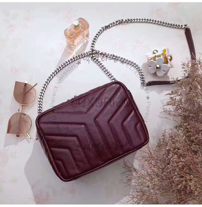 [스페셜오더]SAINT LAURENT-454317 생 로랑 다크 레드 은장 클래식 스몰 모노그램 생 로랑 볼링 백
