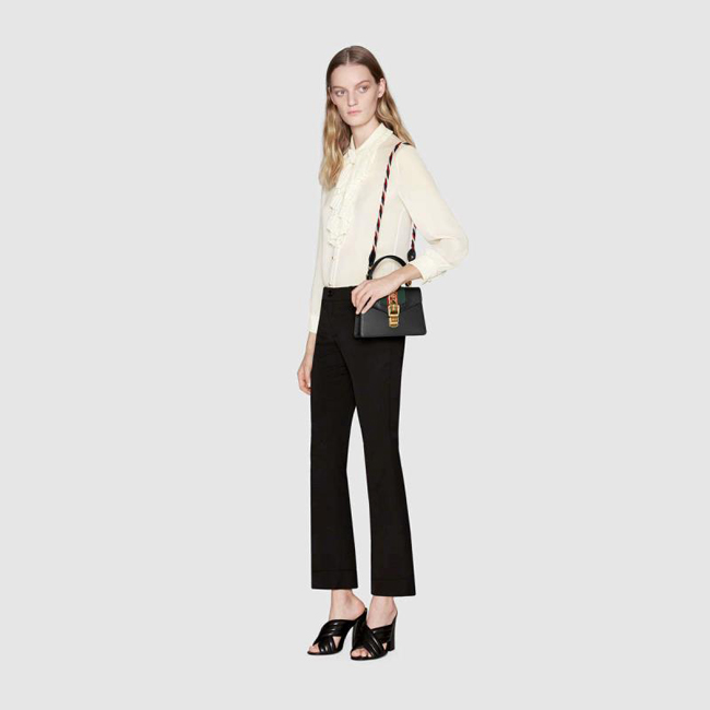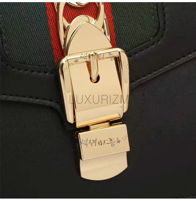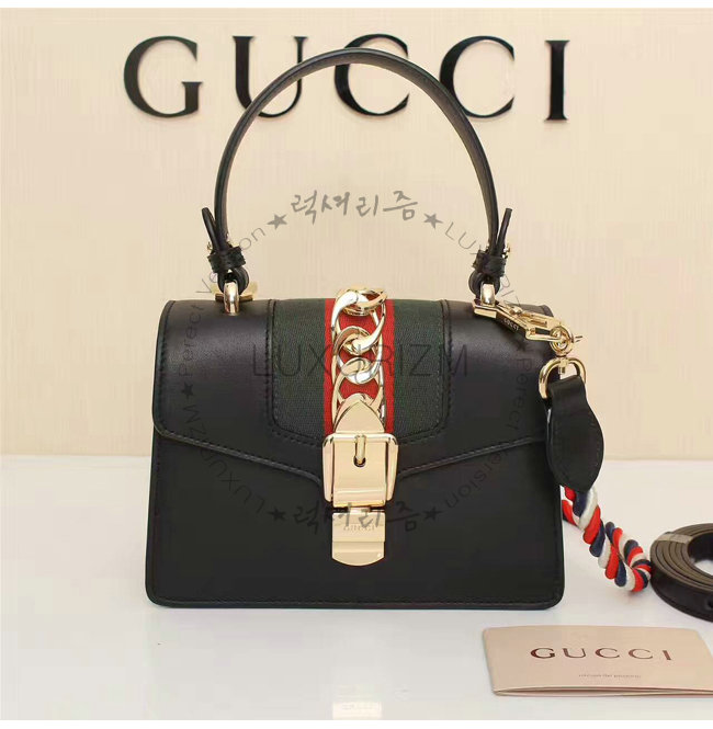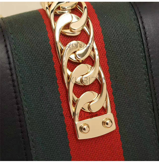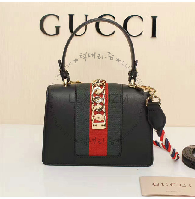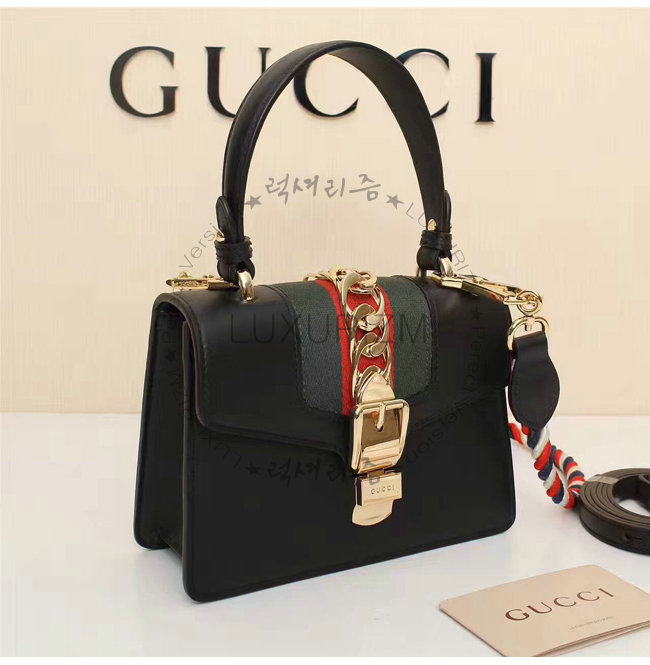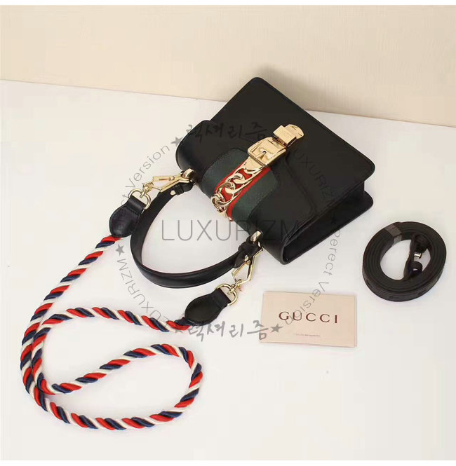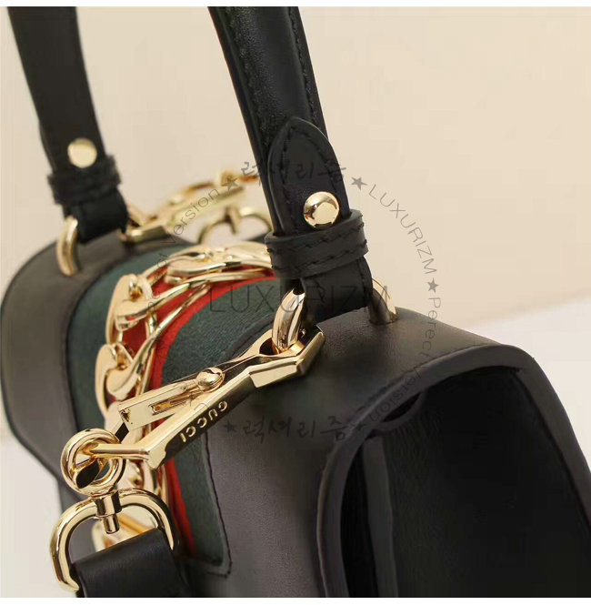 [스페셜오더]GUCCI-470270 8015 구찌 Sylvie 실비 미니 Web 디테일 골드 체인,버클 장식 탑 핸들 백 블랙
