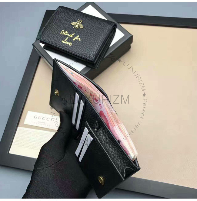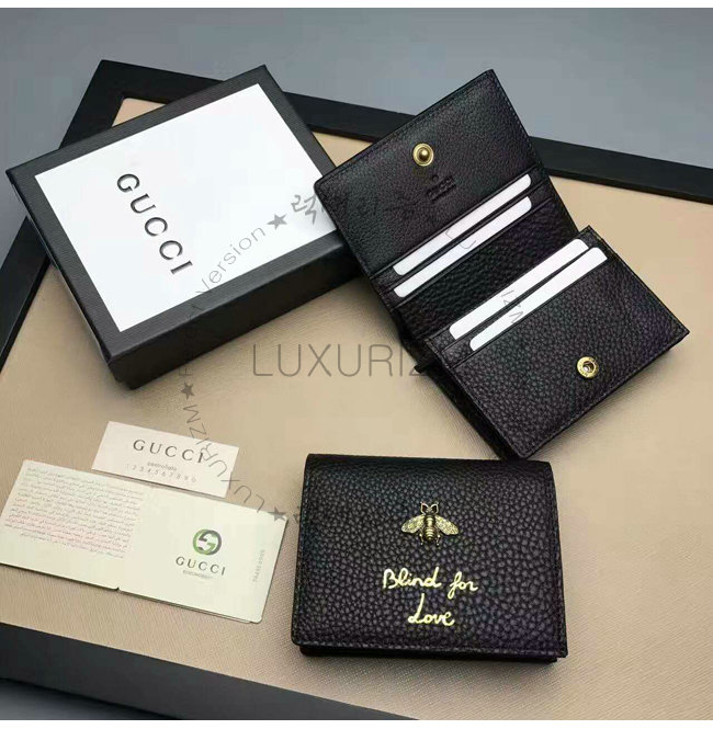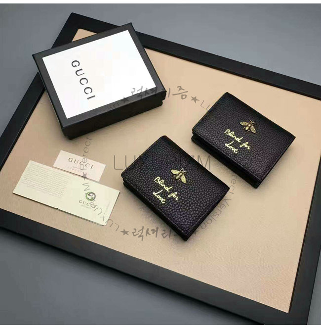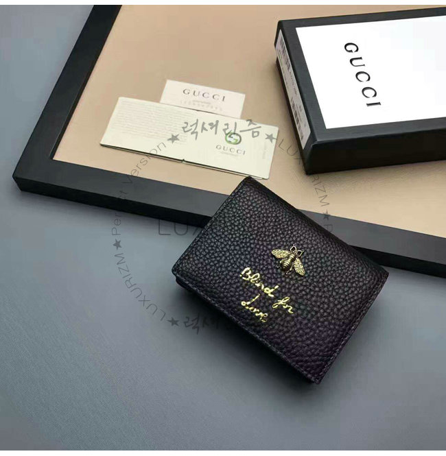 [스페셜오더]GUCCI-460185 1000 구찌 Animalier 카드 케이스 블랙