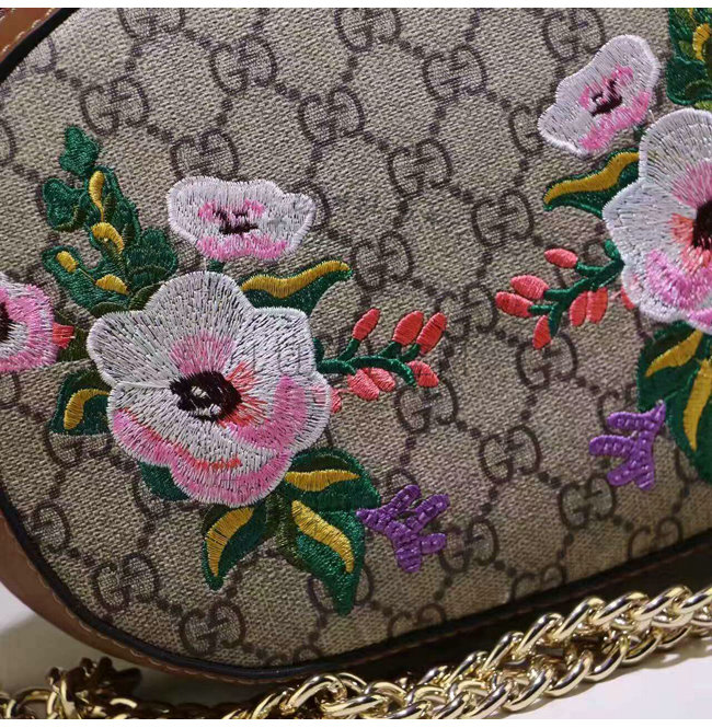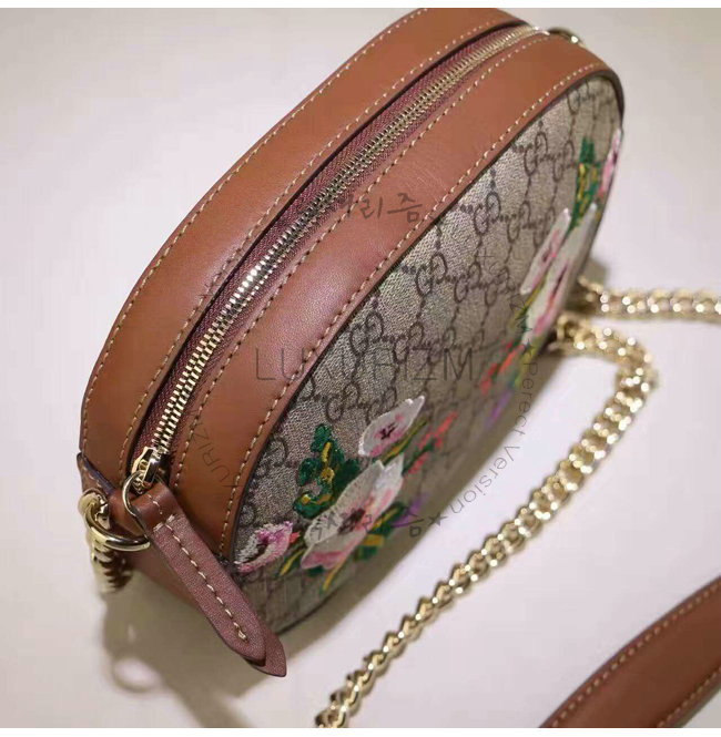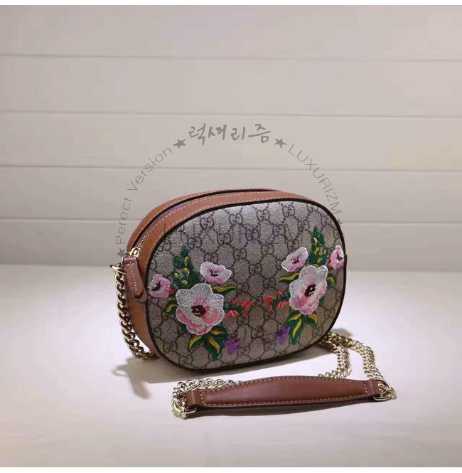 GUCCI-409535 8315 구찌 체인 숄더 스트랩 새 및 플라워 자수 아플리케 GG 수프림 캔버스 콤팩트 백