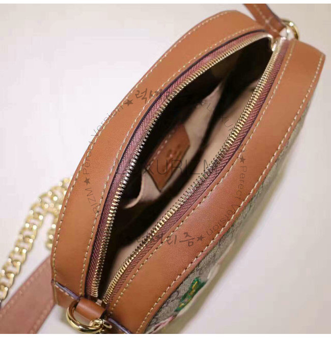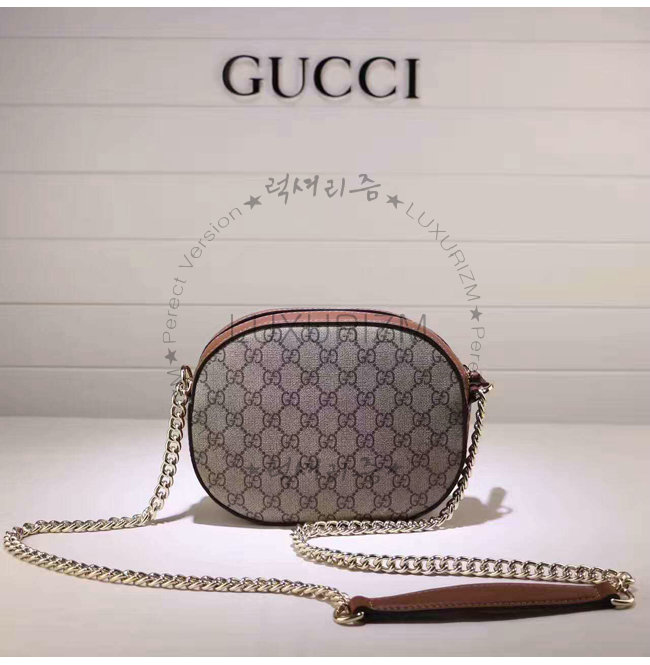 GUCCI-409535 8526 구찌 체인 숄더 스트랩 GG 수프림 캔버스 콤팩트 백 브라운