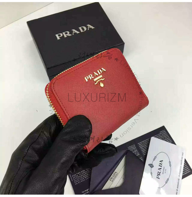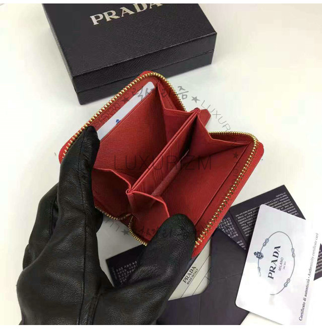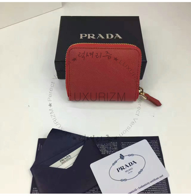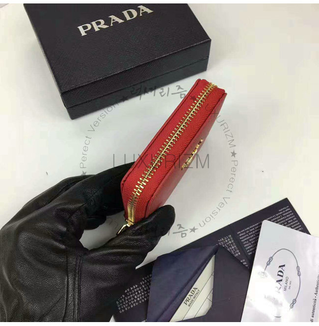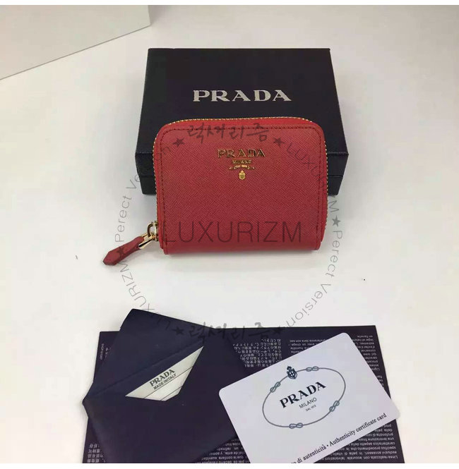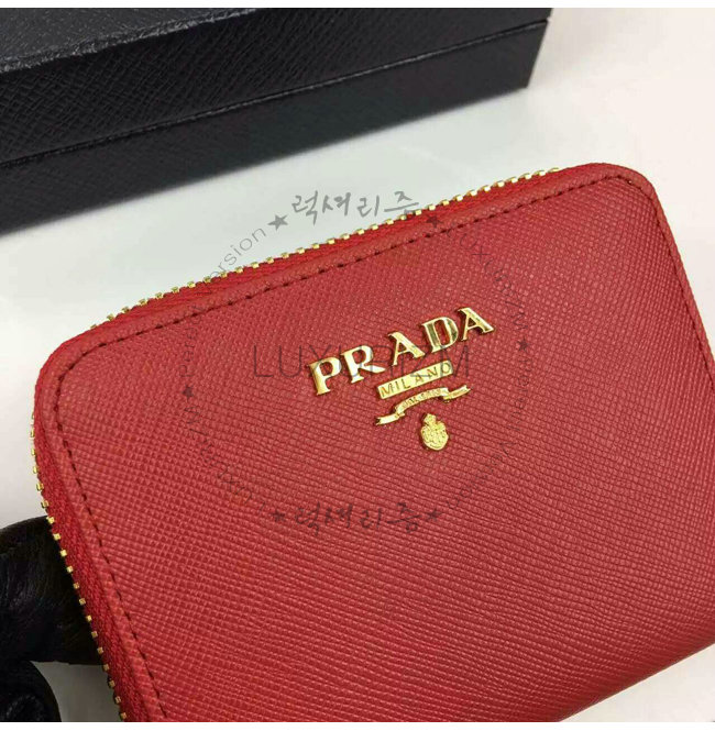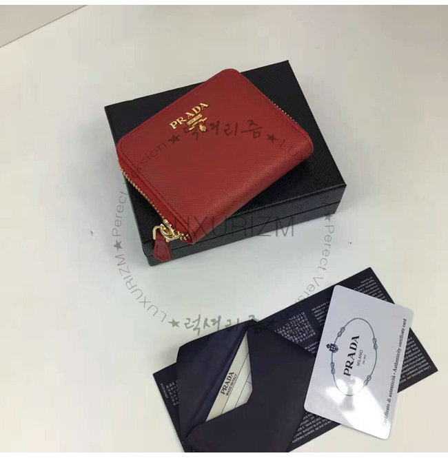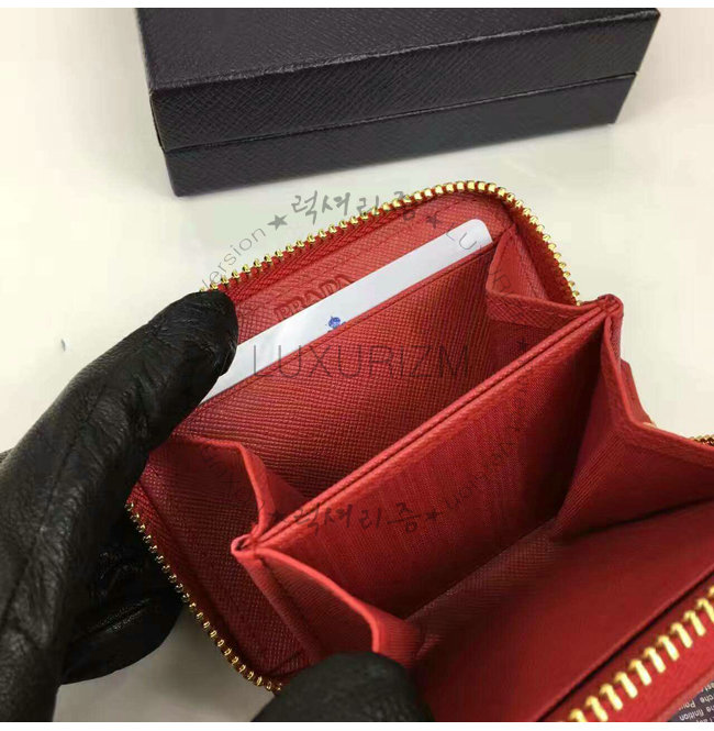 PRADA-1MM268 프라다 사피아노 메탈릭 골드 가죽 동전 지갑 레드