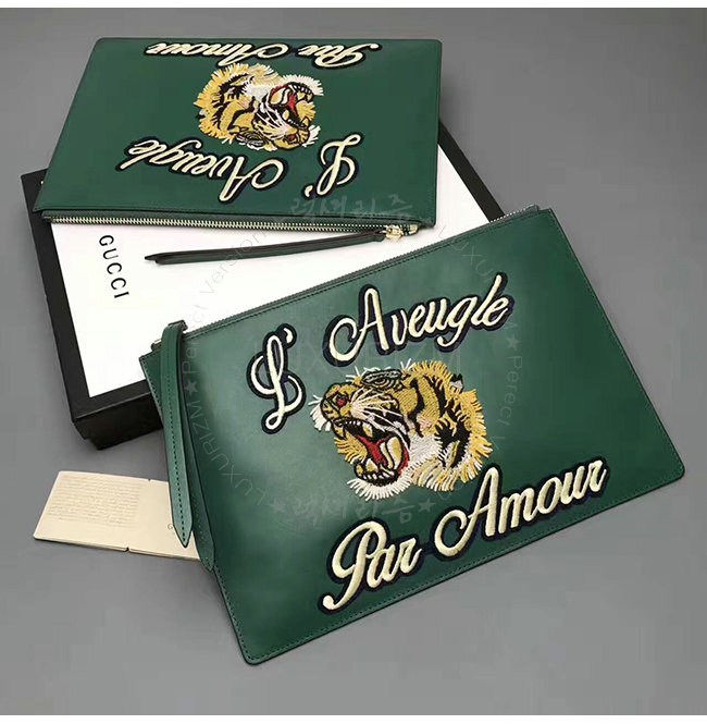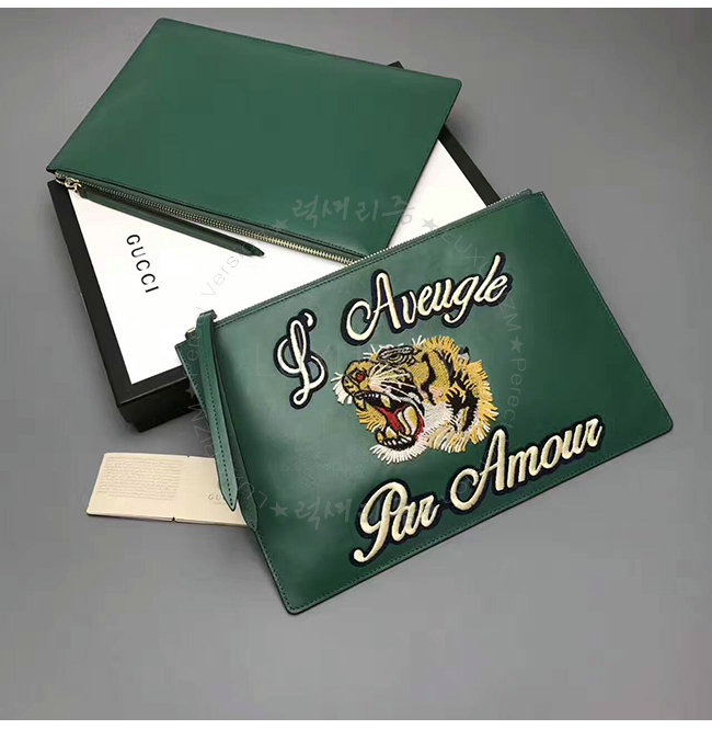 GUCCI- 431416 구찌 에메랄드 가죽 타이거 클러치
