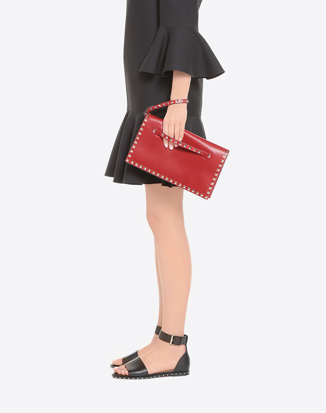 나파 가죽 소재의 Valentino Garavani 락스터드 클러치 플래티넘 마감 스터드