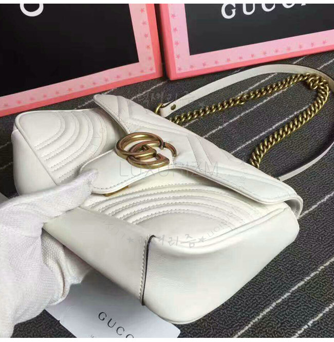 [스페셜오더]GUCCI-443497 9022 구찌 GG Marmont 마몽 마틀라세 스몰 체인 숄더 스트랩백 화이트