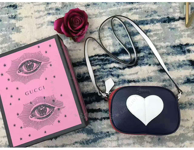 [스페셜오더]GUCCI-457223 4579 구찌 Childrens leather heart 하트 다크 네이비 가죽 메신저 백