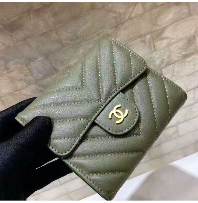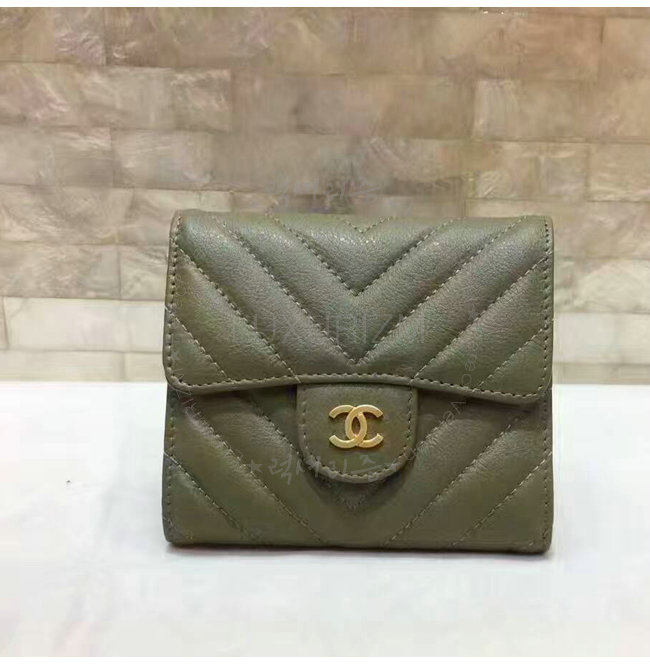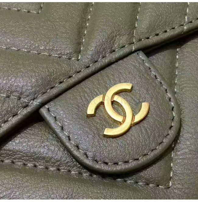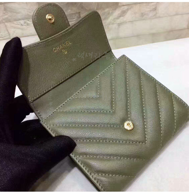 [스페셜오더]CHANEL-A84029 샤넬 카프스킨 골드 메탈 클래식 스몰 더플 지갑 카키
