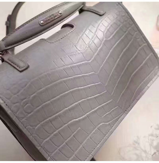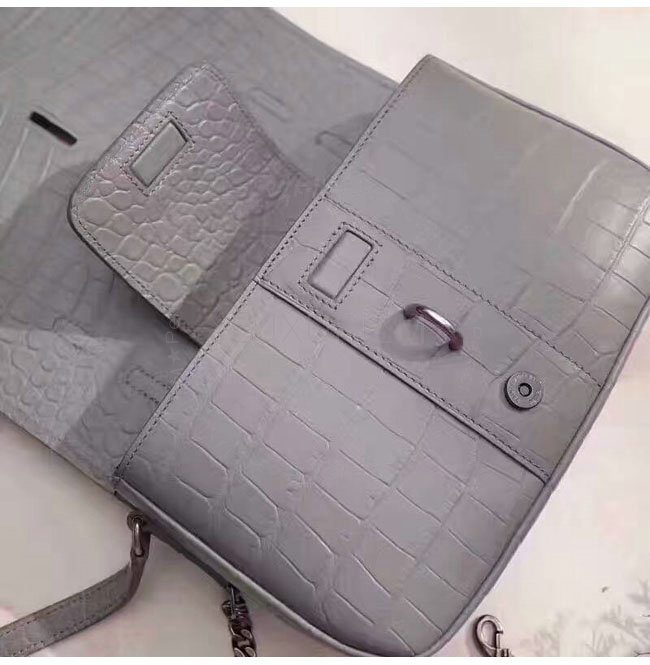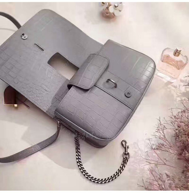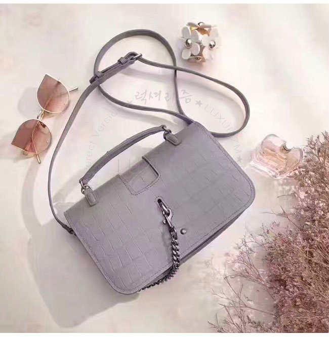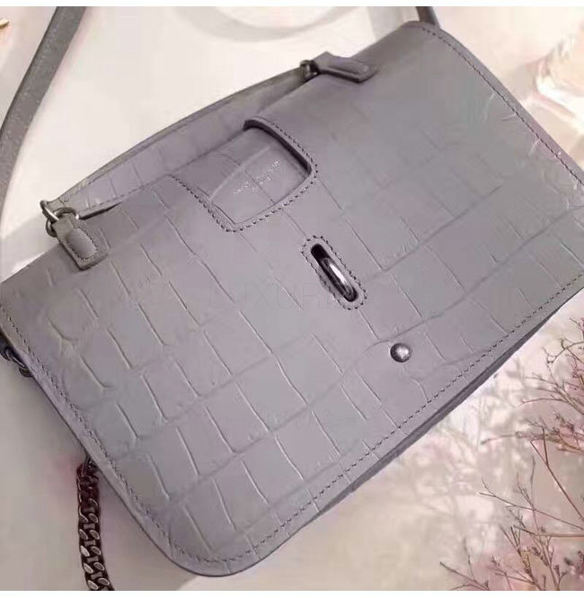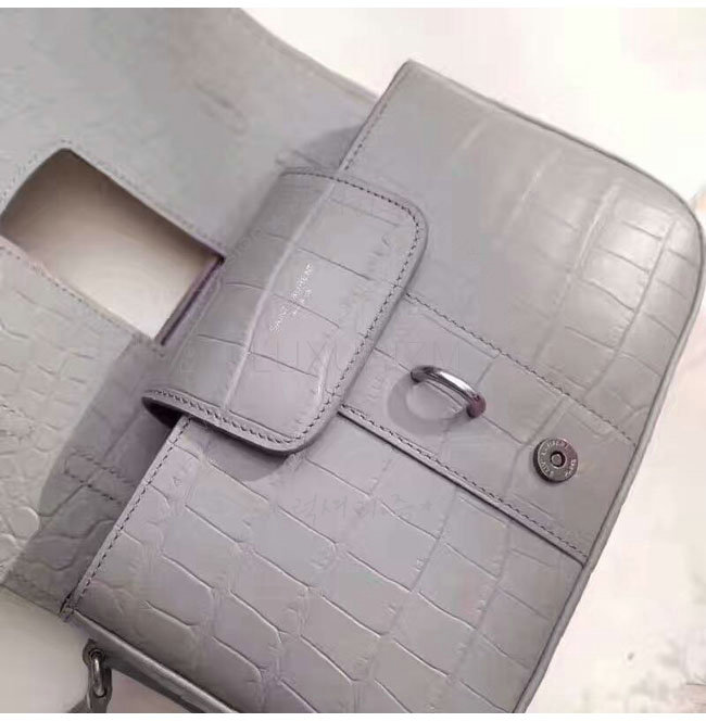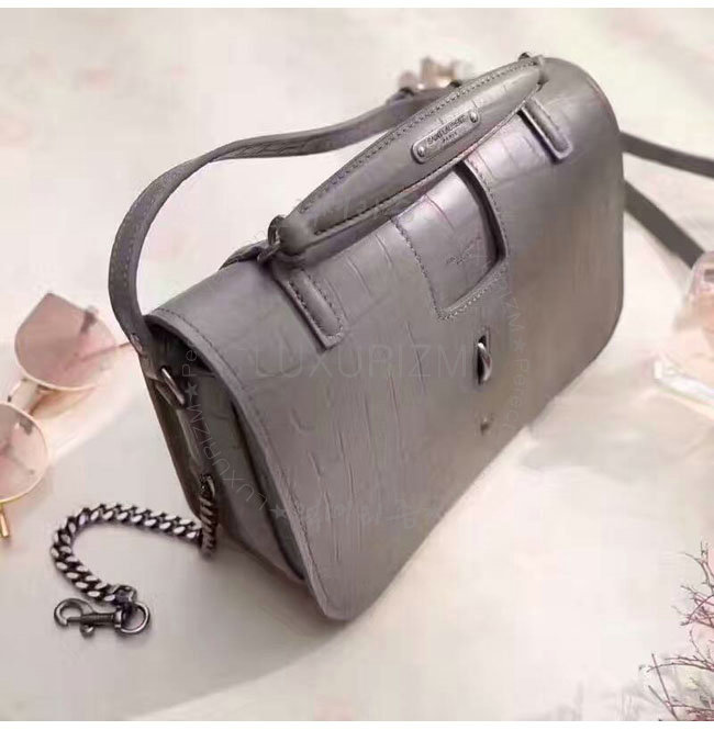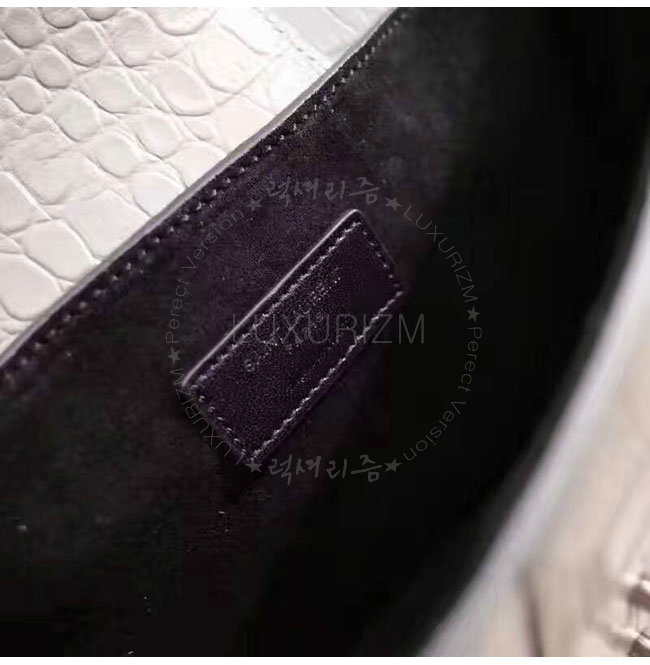 디테일 및 악어무늬가 새겨진 가죽 소재의 생 로랑 사첼 백