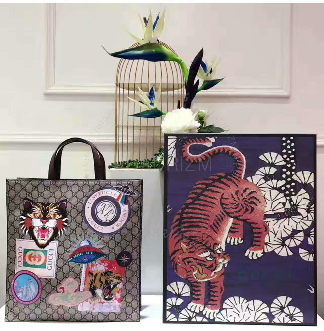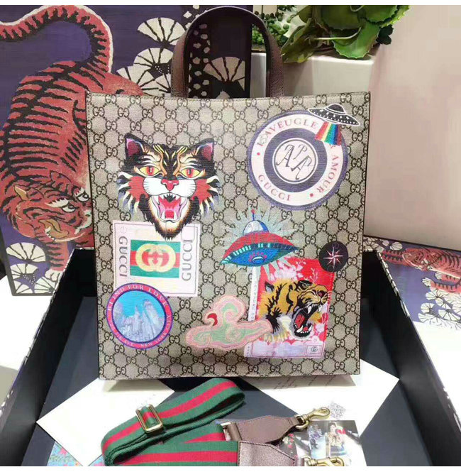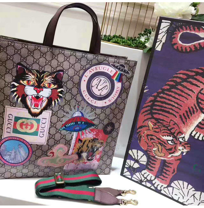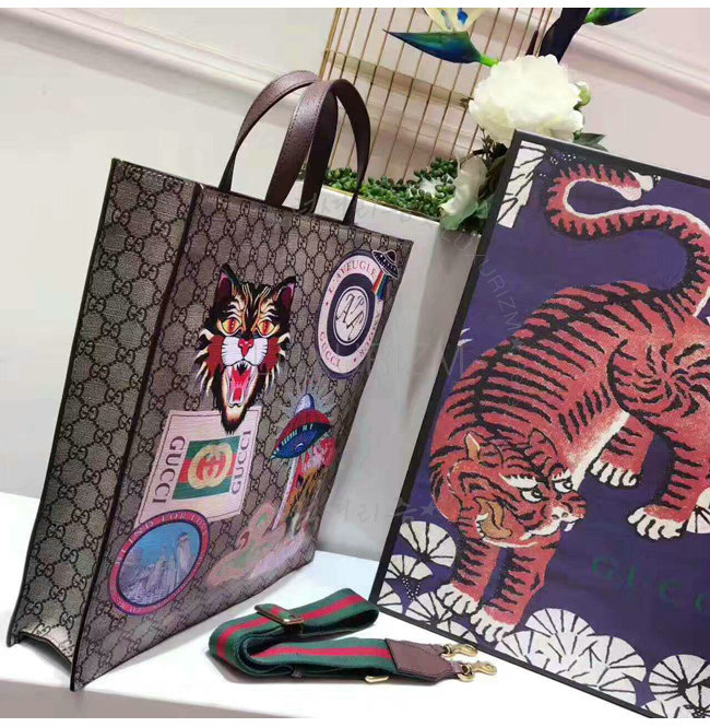 [스페셜오더]GUCCI-450950 8652 구찌 앵그리 캣 프린트 GG 수프림 캔버스 토트 백
