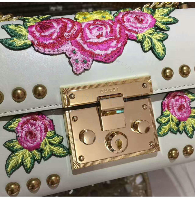 [스페셜오더]GUCCI-432182 8507 구찌 Pad lock 패드락 embroidered 레더 스몰 체인 숄더백