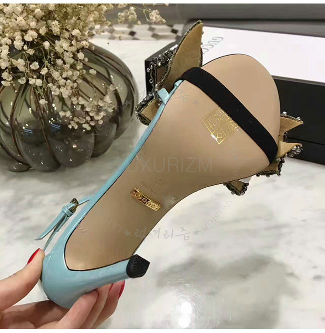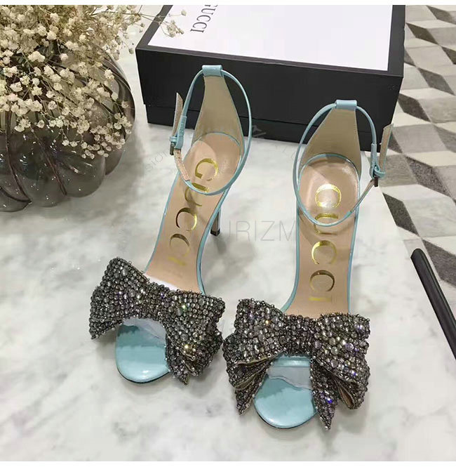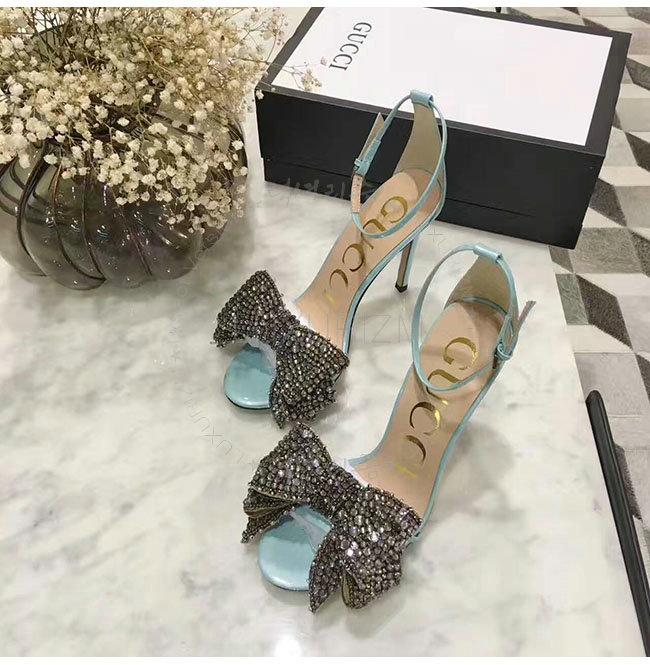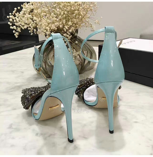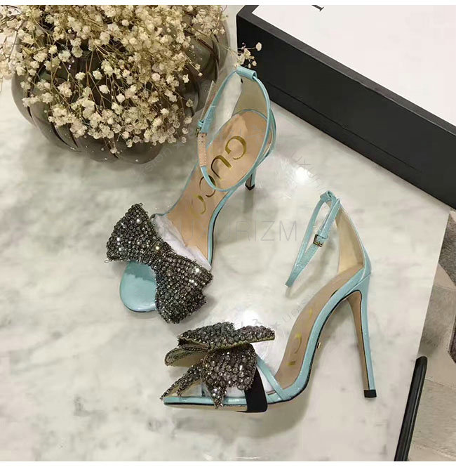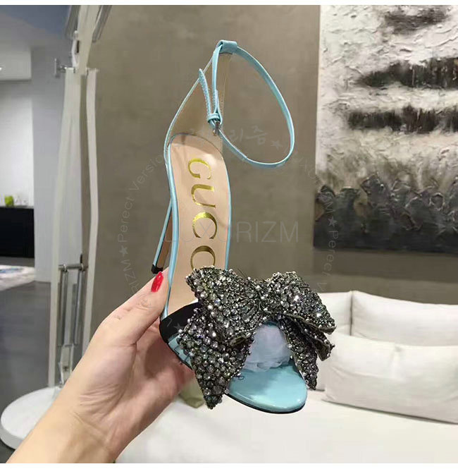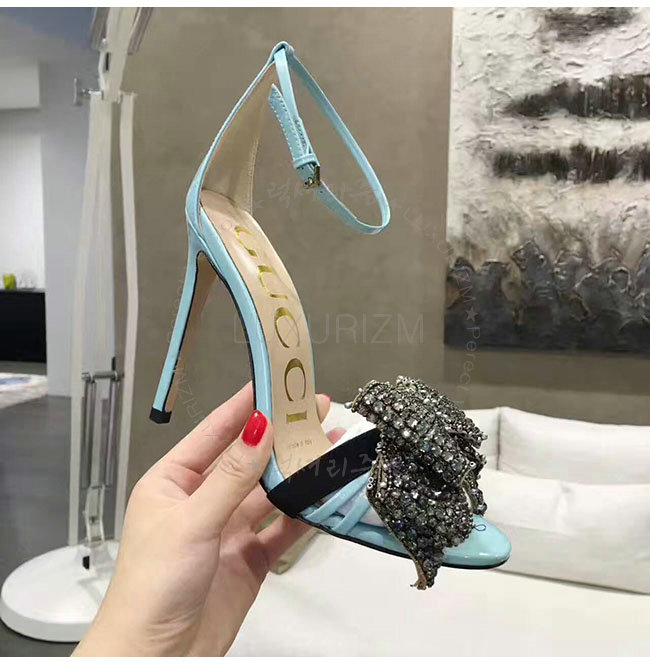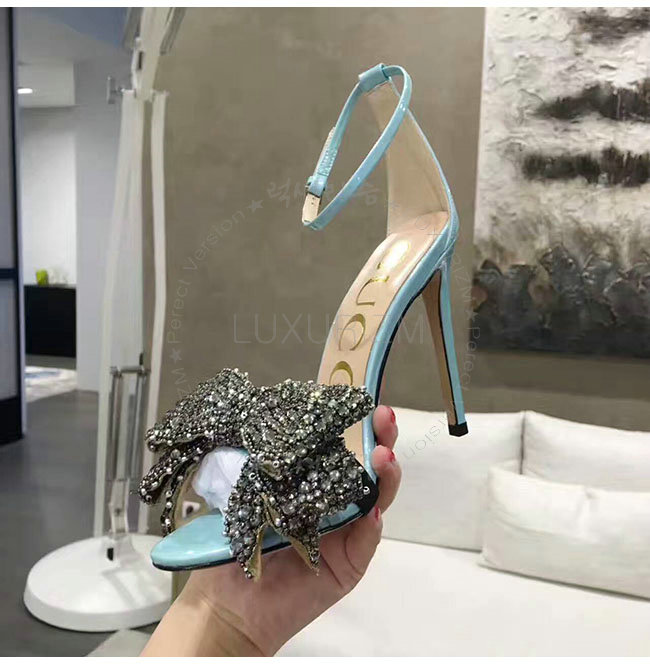 GUCCI-471944 6494 구찌 탈착 가능한 크리스탈 새틴 패턴 민트 가죽 샌들 여성용
