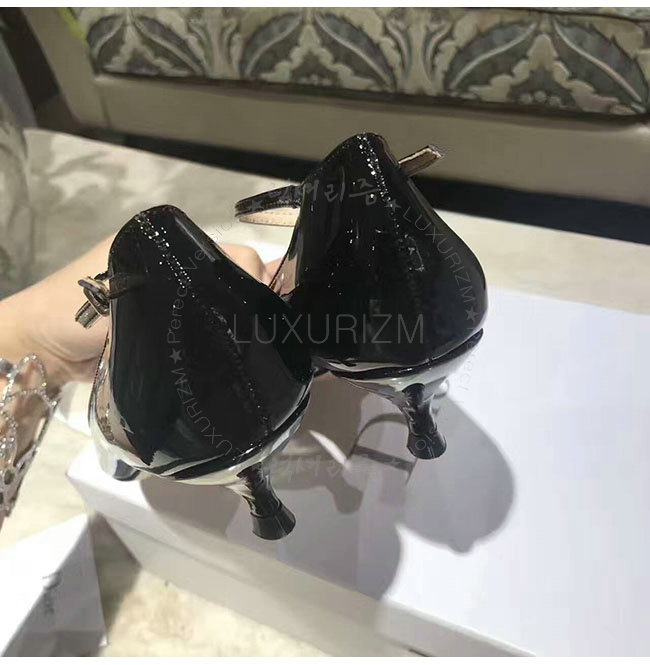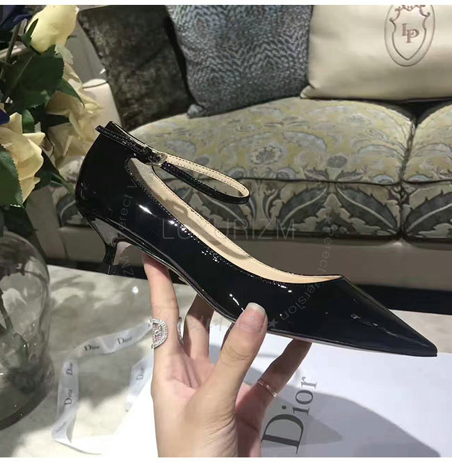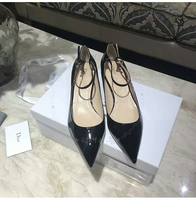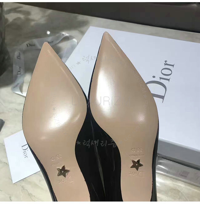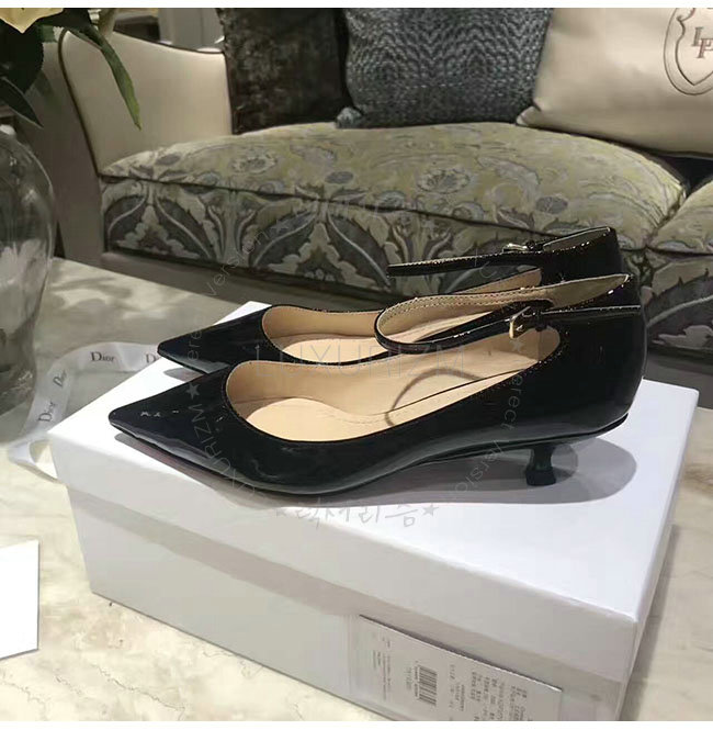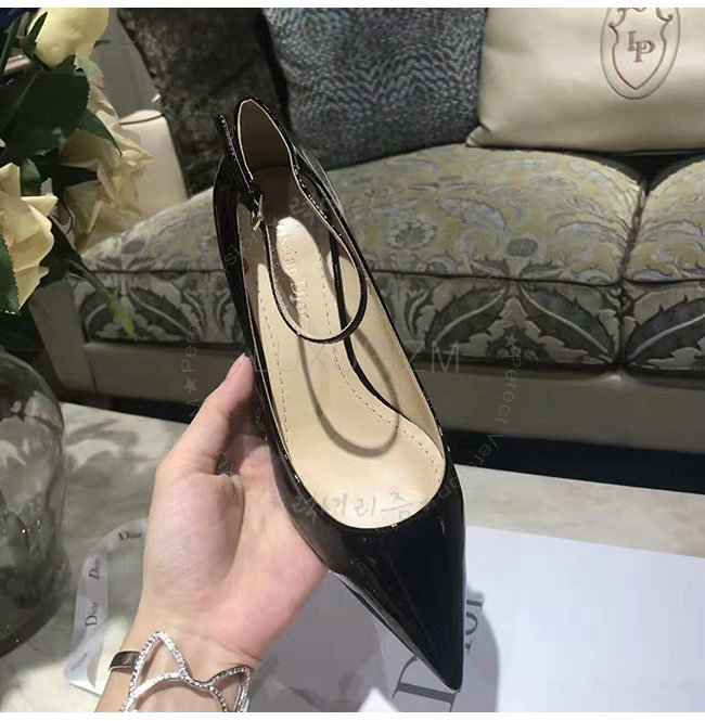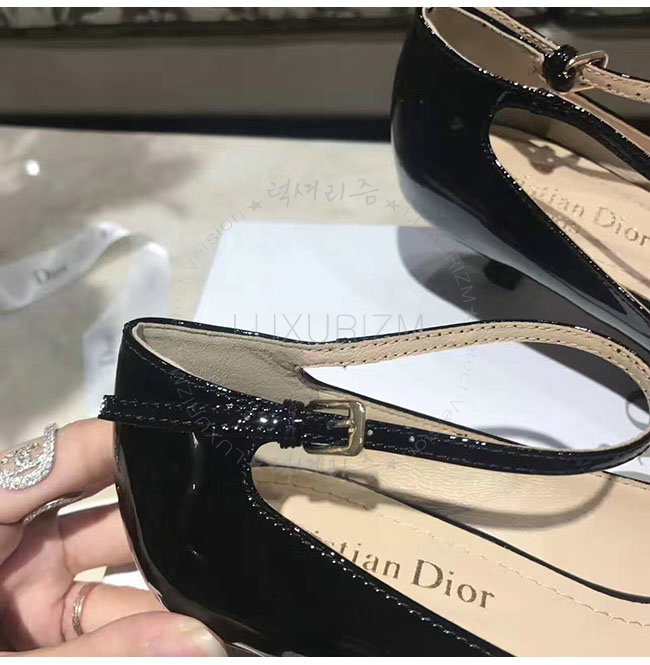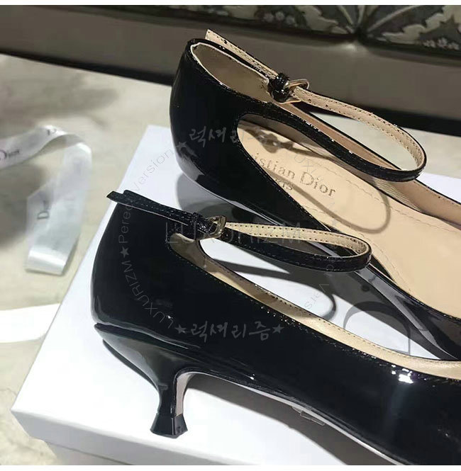 DIOR-KDP320 디올 블랙 페이턴트 송아지 가죽 스트랩 펌프스 여성용